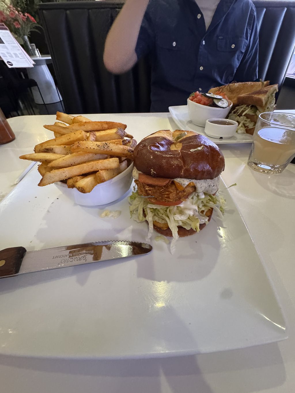 I had the Chick’n Ranch Burger. It was enormous and delicious-I don’t even really like ranch but this was amazing. The pretzel but really went perfect with it.