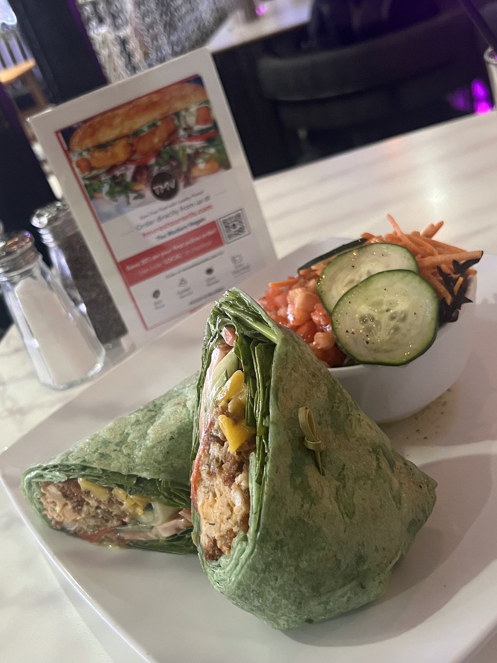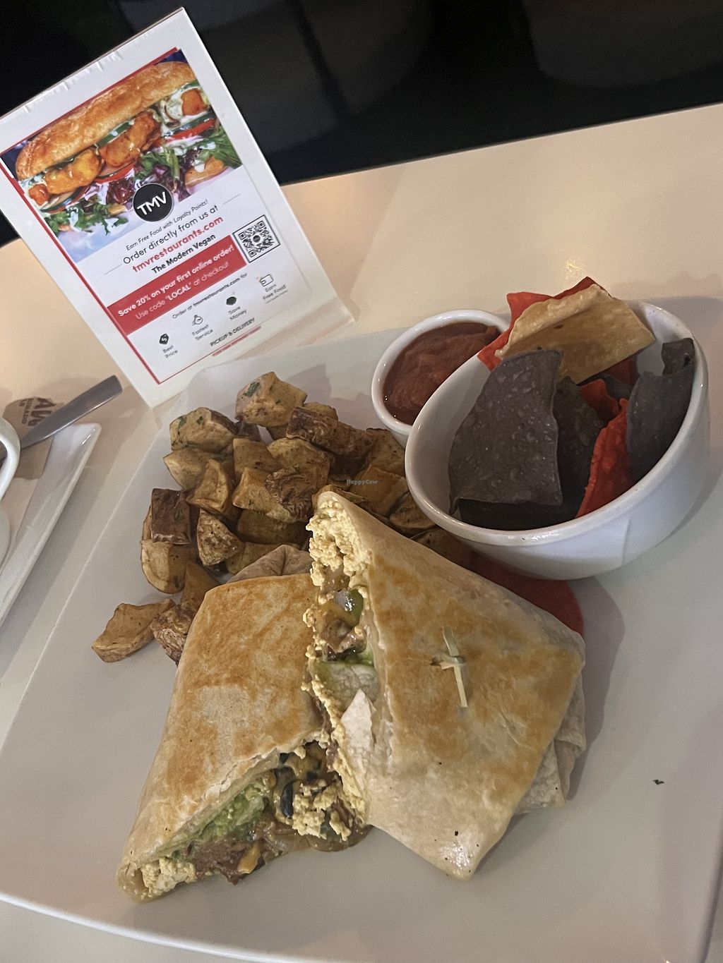 We revisited The Modern Vegan hoping for a better experience after a long hiatus. Unfortunately, it didn’t meet expectations. The tap water was unpleasant, basic table items had to be requested, and service felt disorganized. A broken chair was simply moved from table to table instead of being removed, and although we arrived with other guests, they were served and finished their meals well before ours arrived. When our food finally came, it was lukewarm and lacked freshness. Regretfully, we don’t plan to return.