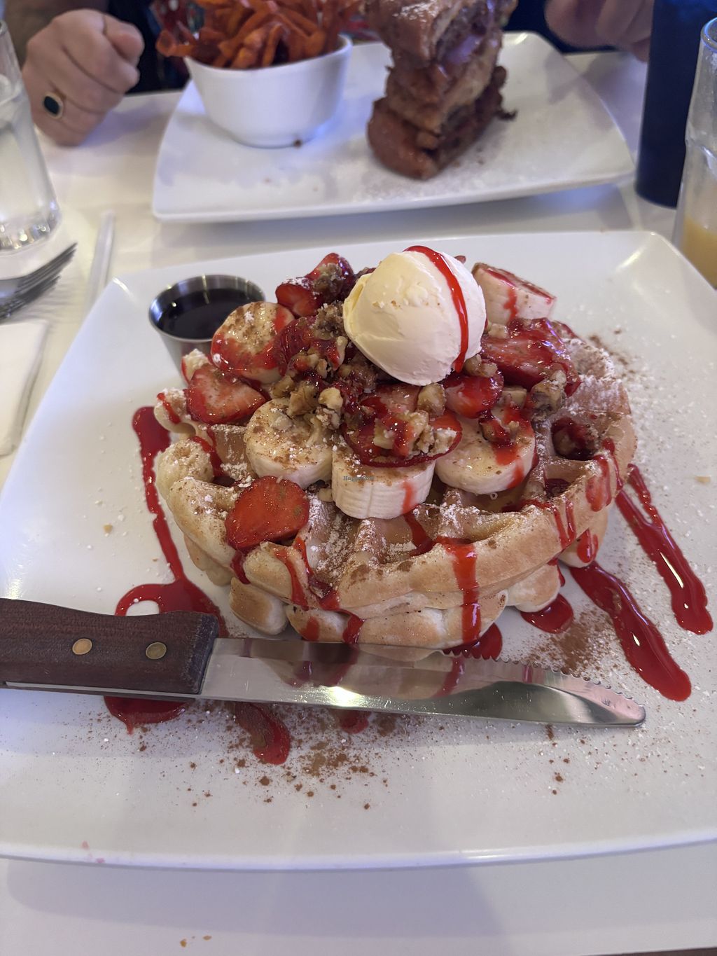 Amazing menu. I wish I could have been able to try more things because everything looked great. The scramble tofu was seasoned perfectly and the pancakes were super light and fluffy.