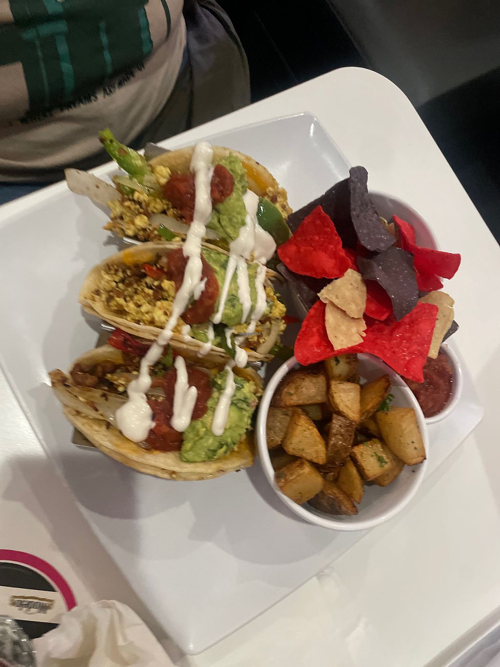 Food was great and there's a ton of options, it's overwhelming. I had the fish tacos, delicious, and my fiance had the buffalo Mac. We also got some hangover fries. One of our entrees was $30 and the other was $25, so it comes at a price, but loved the vibe and plethora of options. #Veganuary