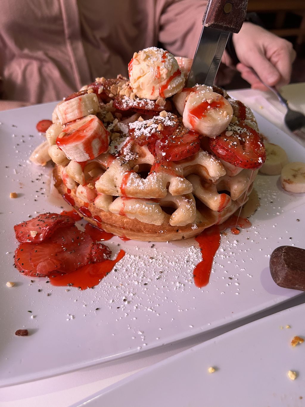 we got the penelope waffles and the sunday funday. it was moderately expensive, but the portion sizes were large. service was quick and kind.