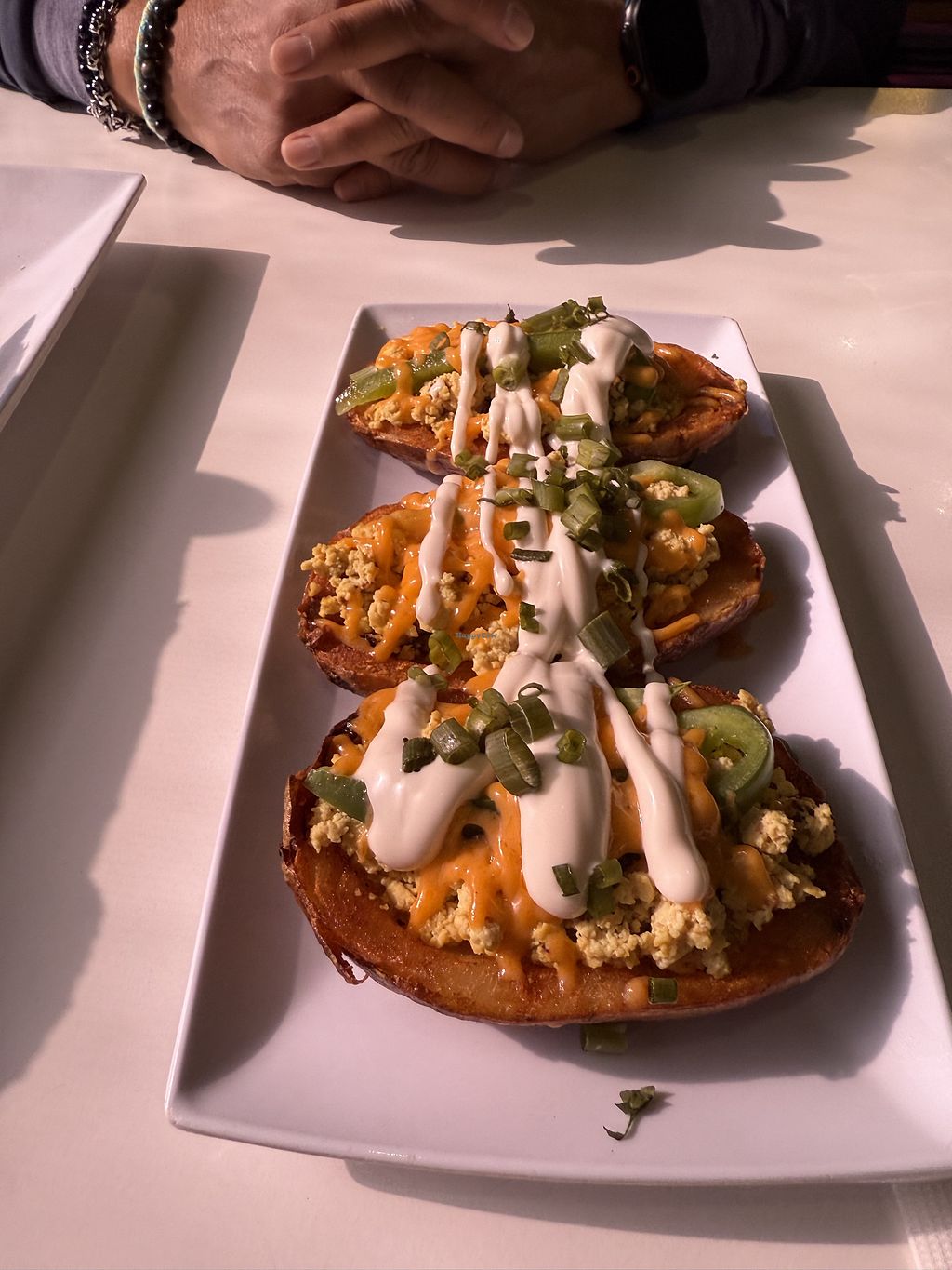 I was very excited to go here, but a bit disappointed. I got the potato skins as an appetizer, which were amazing. I ordered the Buddha bowl as my entree, and it was just not what I wanted at all. When I think of a Buddha bowl, I think of cooked veggies and tofu over rice. What I got was essentially a salad with a bunch of raw veggies and some tofu on top for $23. I likely would have enjoyed a different one of their dishes, but I was just really bummed with what I got. My friend got the roadhouse burger and really liked it.
