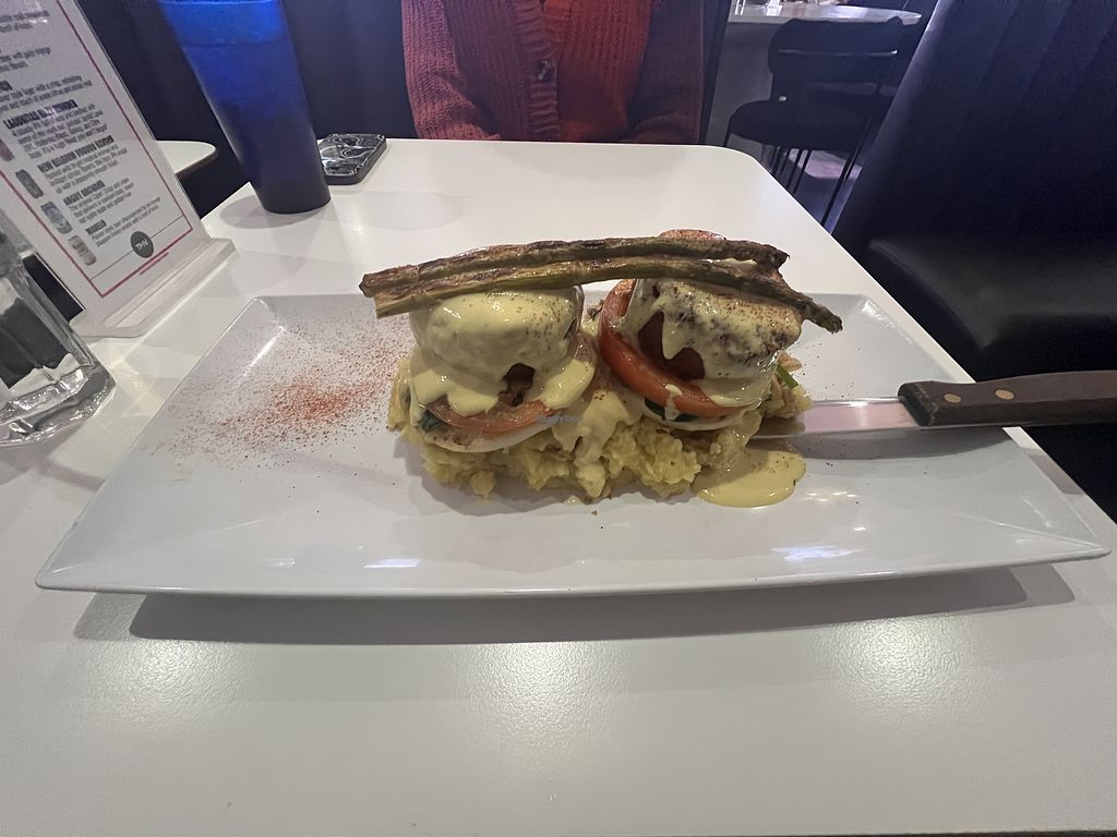 A lot of menu options to choose from, the crabcake Benedict was different and pretty good for what it was. Large portions match the hefty prices.