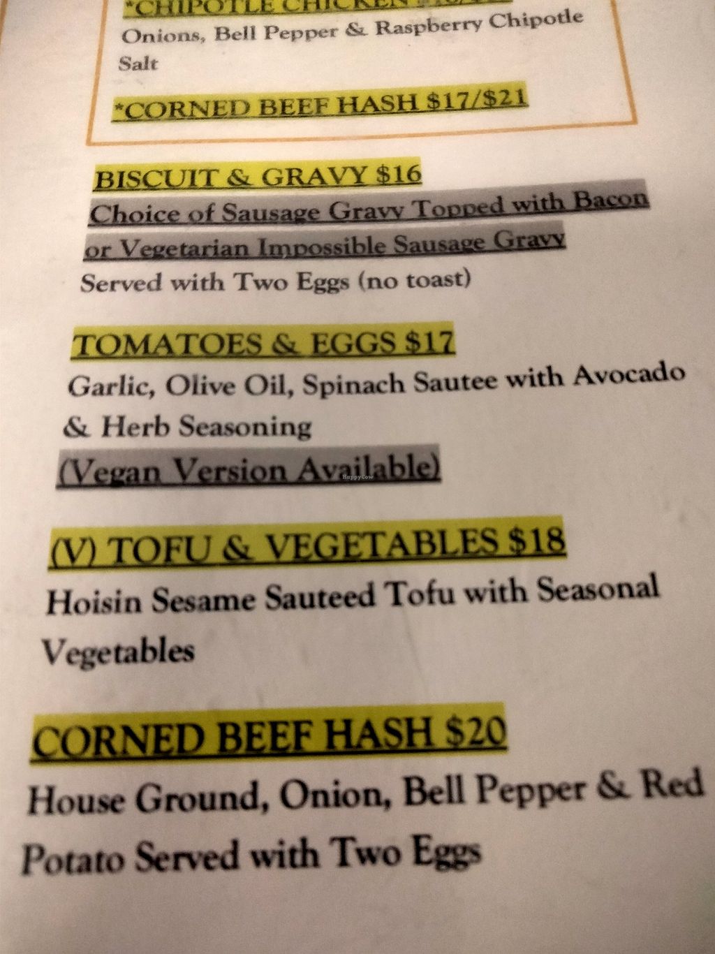 Serves meat, vegan options available. Local mom-and-pop restaurant offering vegan dishes such as tofu and vegetables, veggie potato platter, raspberry coconut waffles, avocado bagel, hash browns, country potatoes, black beans, seasonal vegetables, hoisin sesame tofu, seasonal fruit, Beyond Meat bratwurst, and vegan croissant. Open Mon 8:00am-4:00pm, Tue-Sat 8:00am-2:00pm, Sun 8:00am-4:00pm.