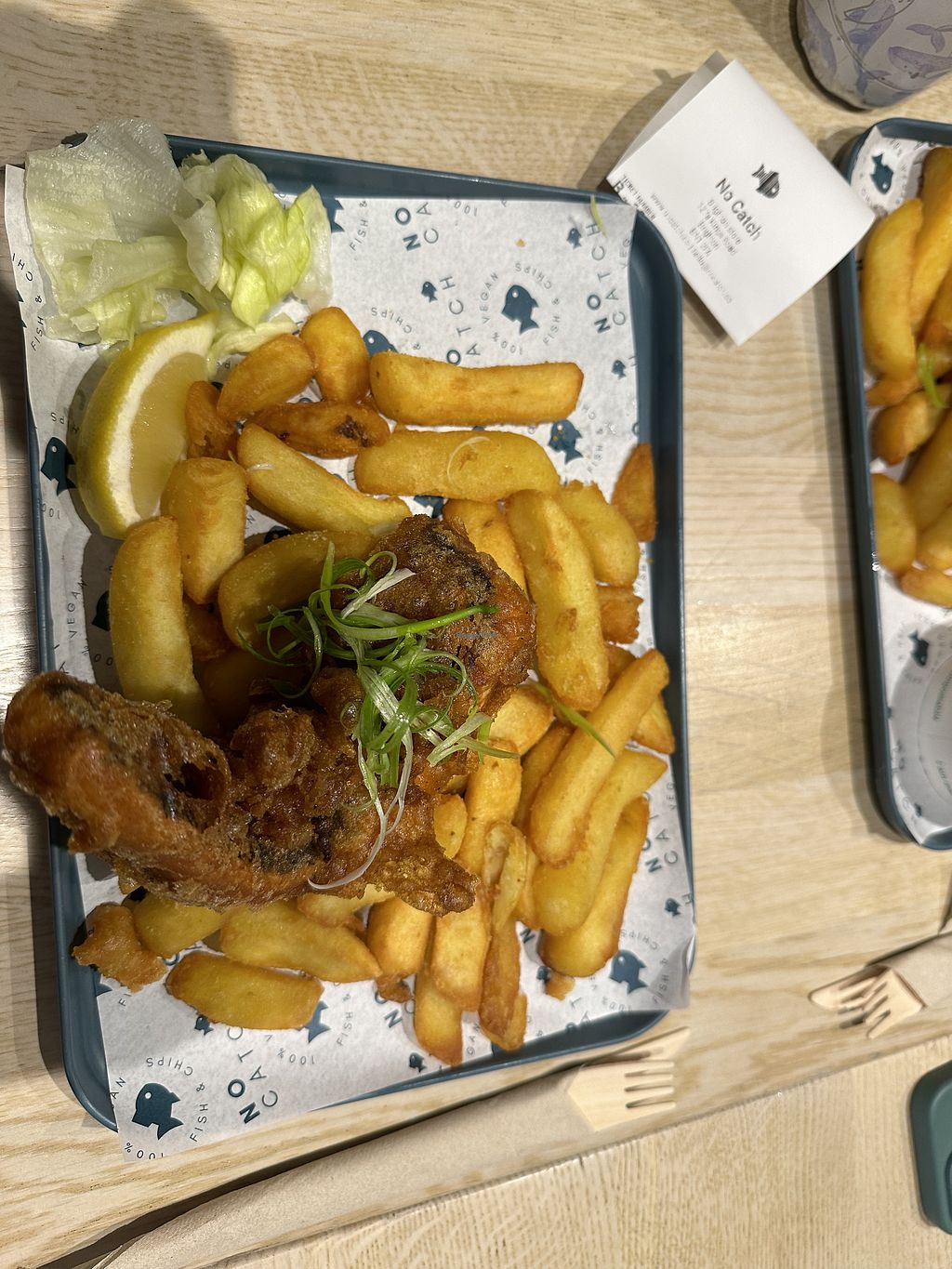 tofish bites (5.99£) and franks hot sauce (0.59£)
