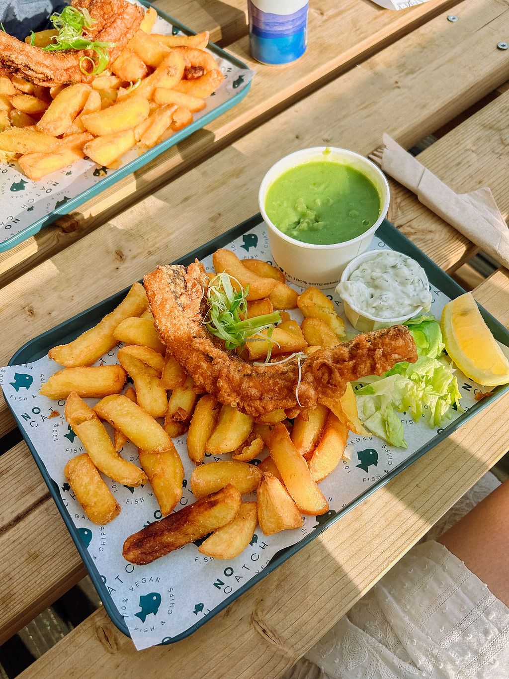 Had the vegan cod and chips with mushy peas, a gherkin, curry and tartare sauce. Everything was exceptional. Please go here and try it, you won’t regret it😋
