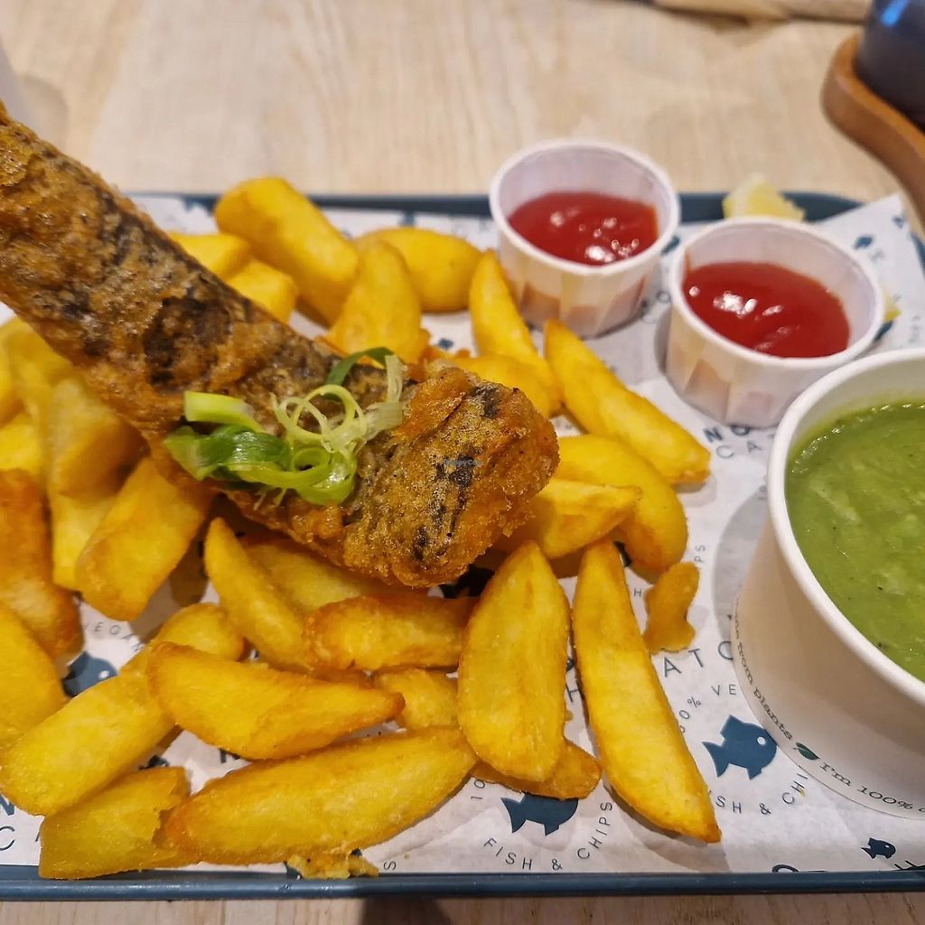 I've been wanting to go here for a while,so finally have on an overnight stay to Brighton. I had the vegan cod and chips and oh my,they were so good! Best I've ever tried. Highly recommend! Try the tartare sauce,it's brilliant. Chips were very good. Chunky and cooked to perfection.