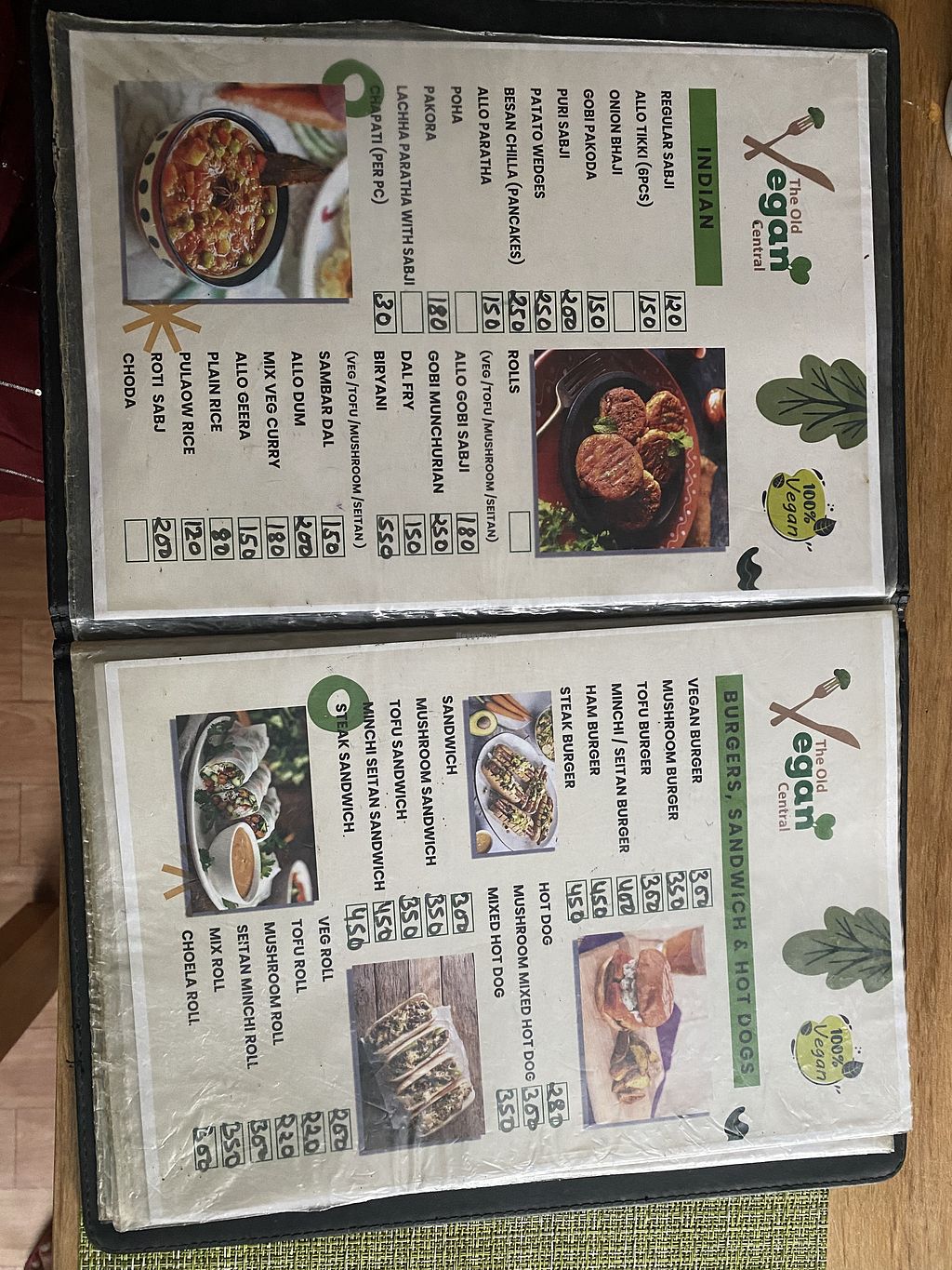 They have an extensive menu primarily consisting of Indian dishes but also Western dishes. They have spacious, very comfortable seats and very calm lighting. Prices are quite good compared to other vegan restaurants in the area. Cash only. Staff are very friendly and service is timely.