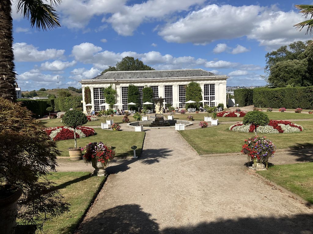 Serves meat, vegan options available. Garden cafe offering a few vegan items such as cooked breakfast, sweet corn & spinach hashes, seasonal salad, roasted cherry tomatoes, chips, warm chocolate brownie with ice cream or sorbet and drinks with oat milk. Open Mon-Sun 10:30-16:00.