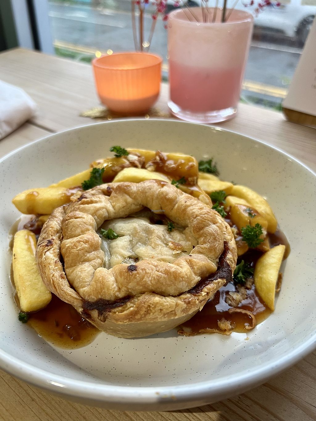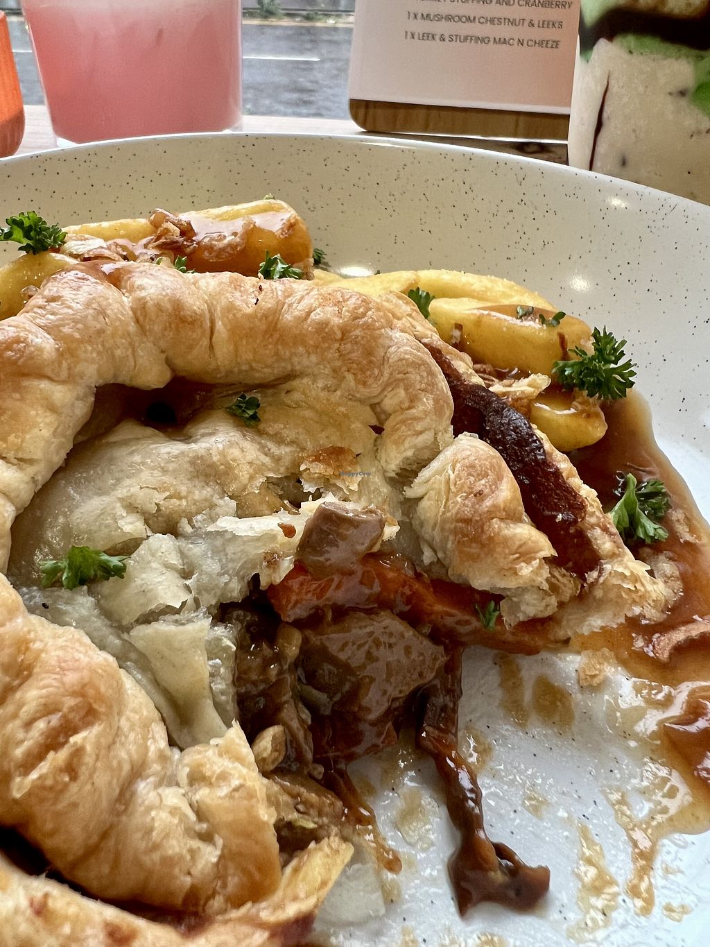 Pros: Top pies, fancy mash & gravy , Peach pastry, The lush dressing on the avo spinach loaded toast
