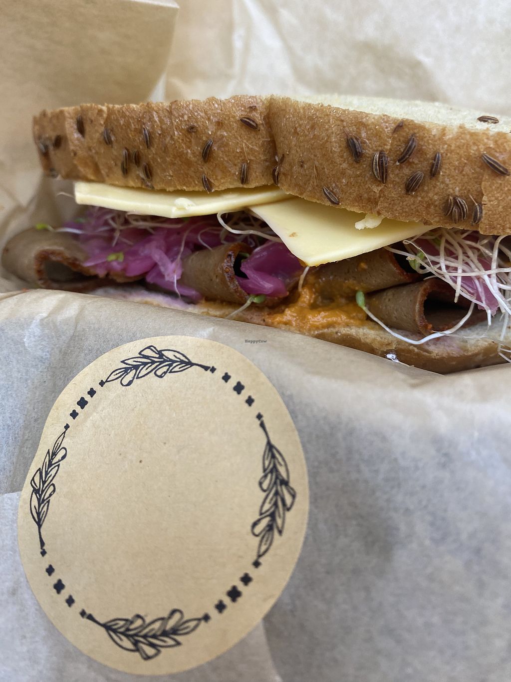 Mostly bread and two THIN slices of plant meat. I had the caprese (with ONE wilted basil leaf) and the reuben. Tip to owner: for an $11 to $15 sandwich, you need to add more "meat" to please your customers. Stop being cheap or you won't last.