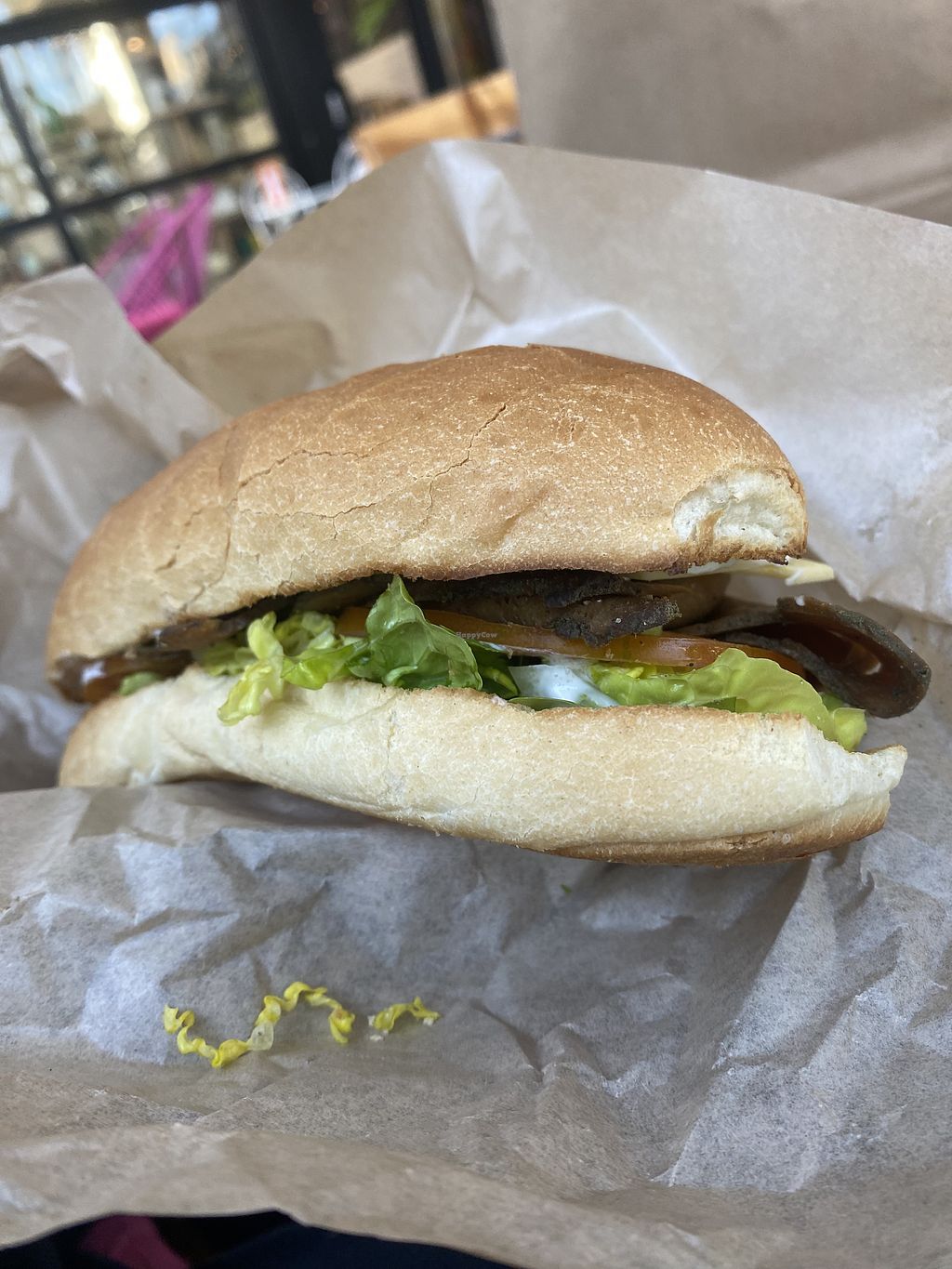 I took the Sandwich and their vegan chicken piece back to my hotel and had it 20min later. Nevertheless it still tasted incredibly good. Very hearty and meaty. All the ingredients of the Sandwich just fit together perfectly and the crunch from toasting the sandwich was still there as well as some residual heat. Just perfect.