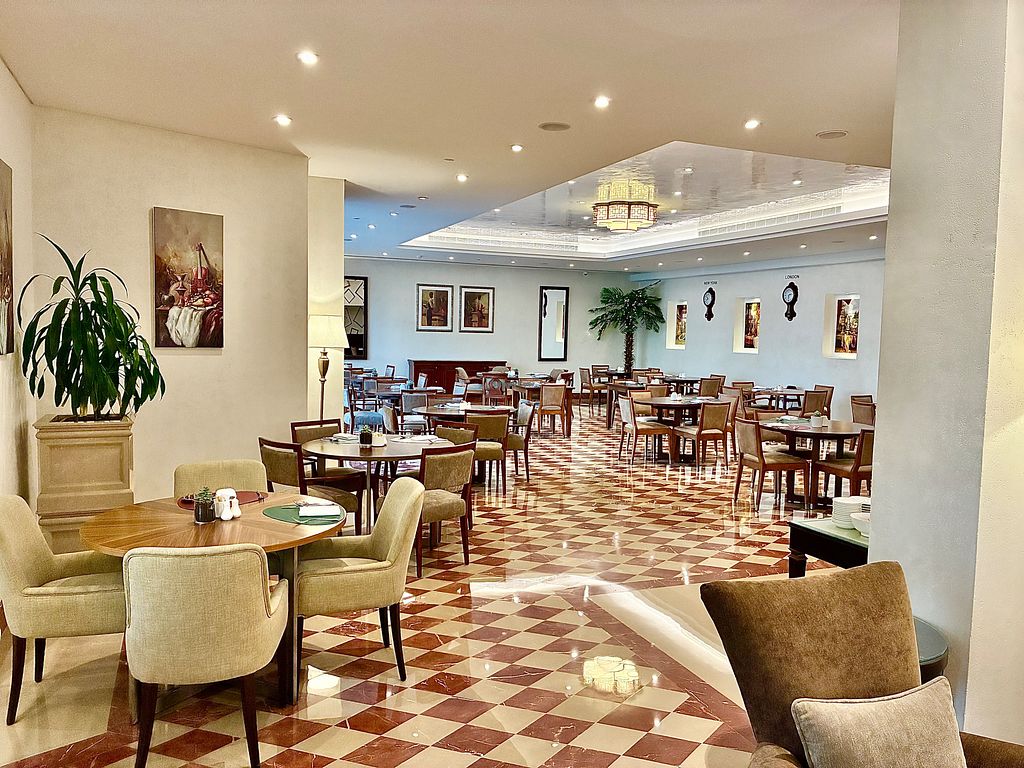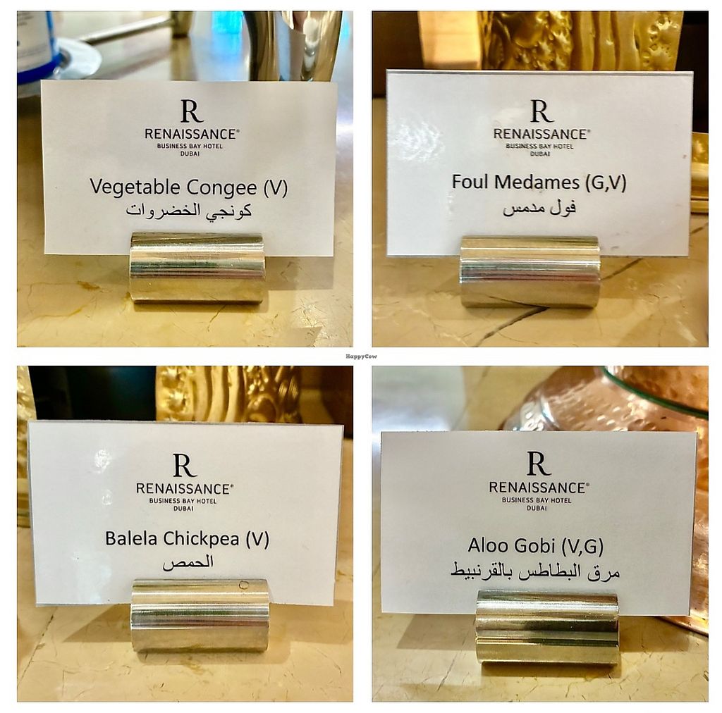 Serves meat, vegan options available. A breakfast buffet restaurant within the Grand Millennium Business Bay Hotel, which is open to the public. Serves international cuisine. Vegan buffet items are clearly marked, including fresh cut fruit, baked beans, vegetable congee, corn salad, barley, couscous, aloo gobi, vegetable fried rice, foul mudammas (Egyptian fava beans), balela (chickpea salad), a salad bar plus a selection of breads and condiments. Open Mon-Thu 6:30am-10:00am, Mon-Sun 12:00pm-3:30pm, 6:30pm-11:00pm, Fri-Sat 6:30am-11:00am, Sun 6:30am-10:00am.