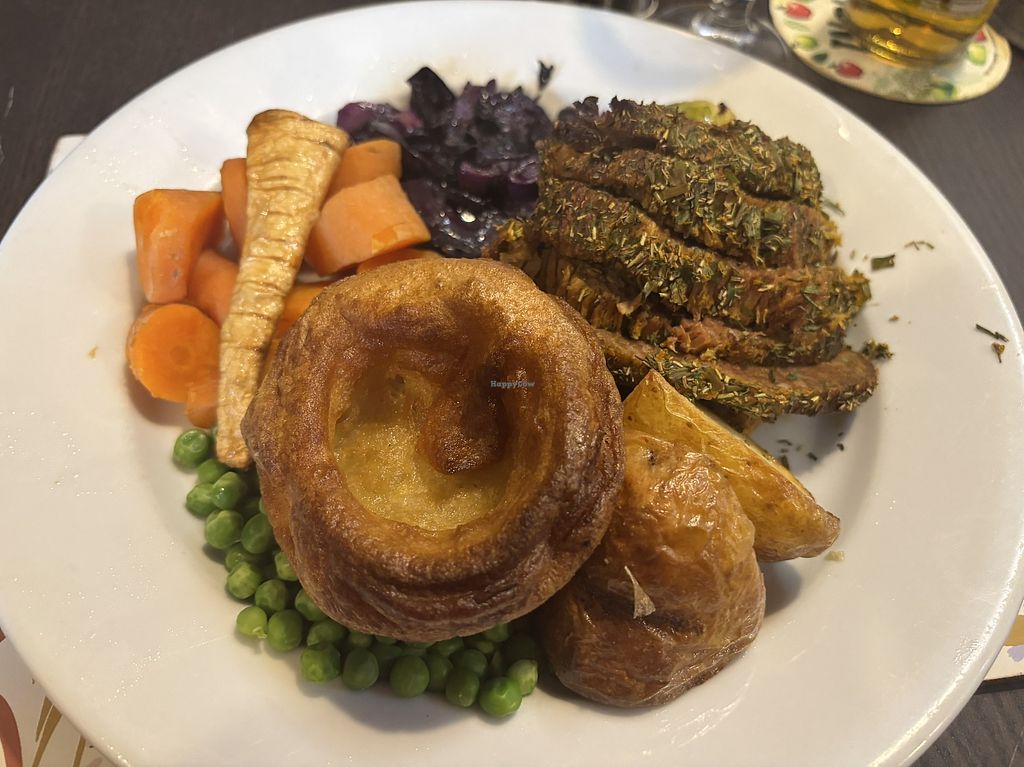 We booked for Sunday lunch & enjoyed everything we ordered. There was a good choice of starters-we had mac & cheese, and mushroom pate on pinsa bread. The starters were good sized portions. The mains were delicious-my herb crusted beef was tender and tasty & served with a Yorkshire pudding, red cabbage, sprouts,carrots, and peas & roast potatoes. We also had the herb chicken served with the same accompaniments. I would have liked more veg-as 2 sprouts, 1 slice of parsnip & 2 roasties seemed a bit frugal- but the plate was full so perhaps I’m just fond of vegetables!