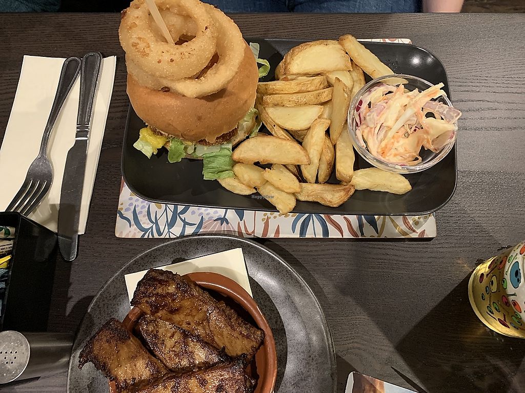 Always wanted to come here! It did not disappoint. We drove for 2 hours to come for dinner, and my god, we may commute every week!! Beautiful backdrop, lovely friendly staff, and the food is honestly the best vegan food I've ever eaten! I had l%mb burger onion rings and salt and pepper chips, while the better half had mac and cheese with shredded juicy marbles on ( a whole juicy marbles I might add)with potatas bravas mouth wateringly goood!! Haha and I had chocolate orange jaffa cake (cake) which was incredible while she had biscorff cheesecake, again just stunning! Honestly I can't praise the food , the people , the place all made with love! WE WILL BE BACK SOON!! 💚💚💚💚