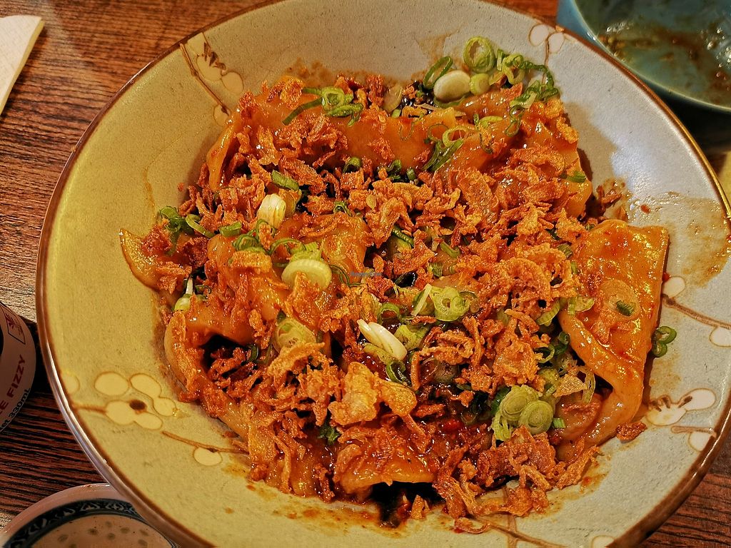 Serves meat, vegan options available. Small southwest Chinese street food cafe with vegan choices. Menu is clearly labeled and includes deep-fried jiaozi, Chinese spiced potatoes, cucumber salad, garlic chili tofu and cold noodle salad. Additional dishes can be made vegan upon request. Relocated from 134 Newlands Rd. Open Wed-Sun 15:00-22:30. Closed Mon-Tue.