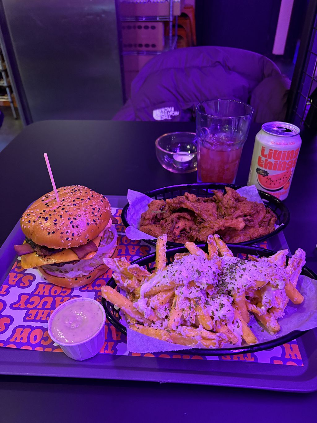 Ok I see the hype is huge and I guess I get it? Although the vibe inside is a bit off the food was good, however my burger was just drippingggg with oil. Like I know it’s a burger and it’s suppose to be phat but bro, that was honestly off putting, I had a puddle of fat on my tray. And they left all the rubbery parts of the mushroom in and it was so hard to chew and yeah, just a sensory nightmare for me.