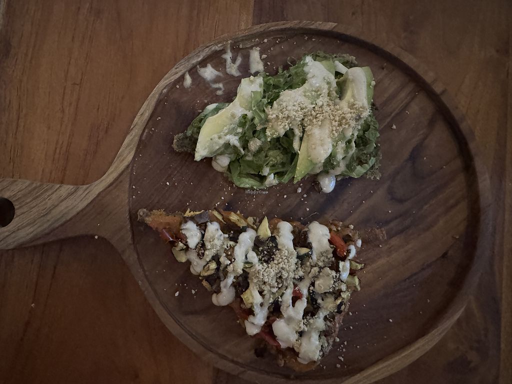 Loved this place. We sat on the first floor in the covered balcony, it has a really nice vibe. The food is amazing, really well prepared. 100% vegan, and so mamy options. Would like to get back to try other dishes. This time we went for the sol bowl and the dried tomato hummus with green salad and flaxseed cracker. Yummy!