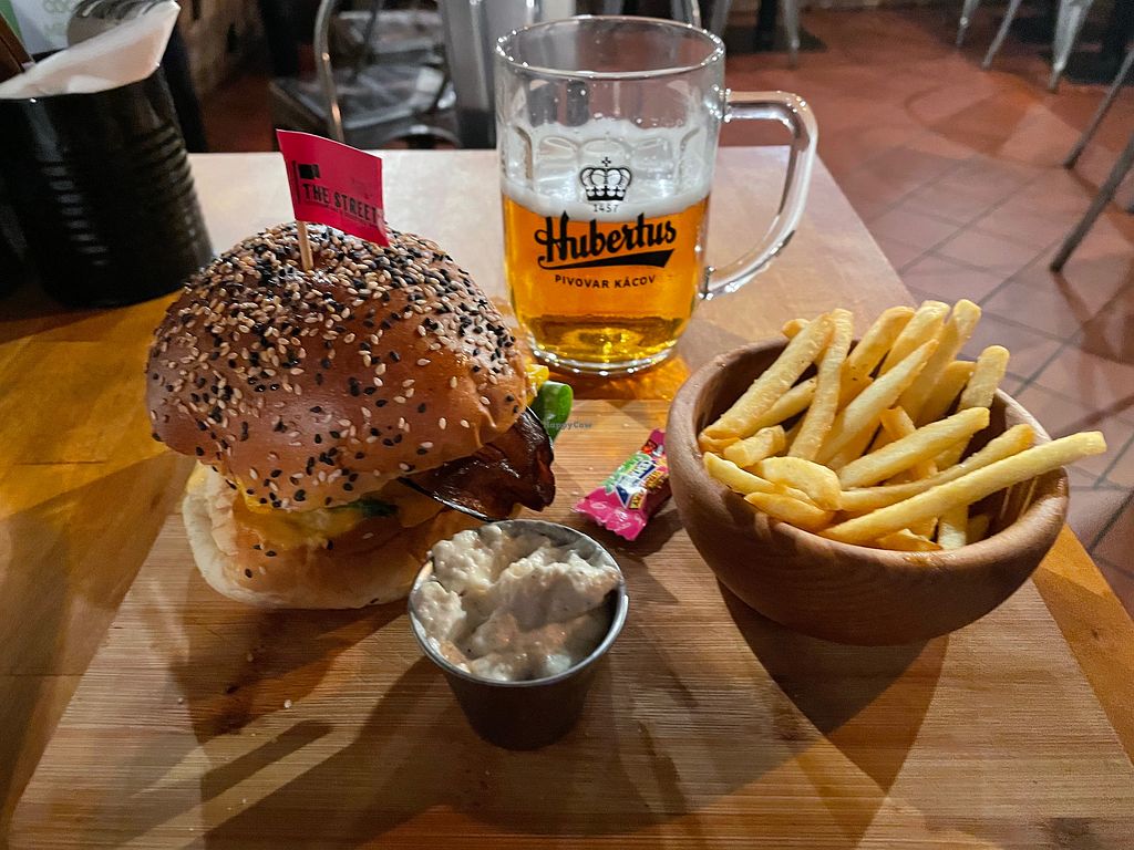 Nice little bar with a vegan burger menu, plenty of options to choose from. The burger patty is nice and filling not too "beefy". Had the pear burger, which was nice and fresh. Burgers come with fries, but sauces are extra. Burger was around 339czk (£11.50ish).