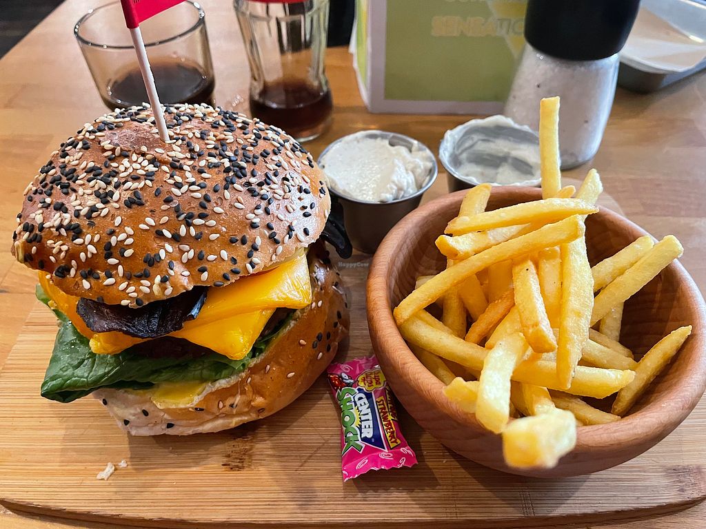 Many vegan options and delicious! The burguer comes with fries. Loved it!