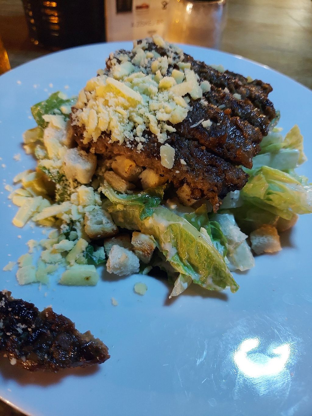 I had a vegan Caesar salad. The croutons were a bit stale and there was a burger patty in it. Unusual, but you could still eat it.