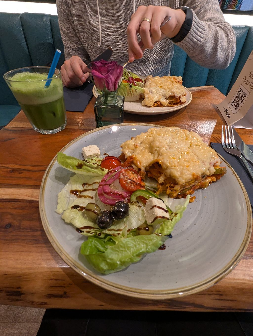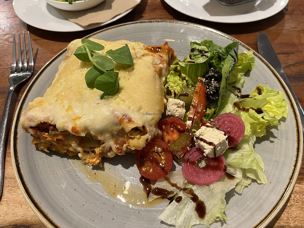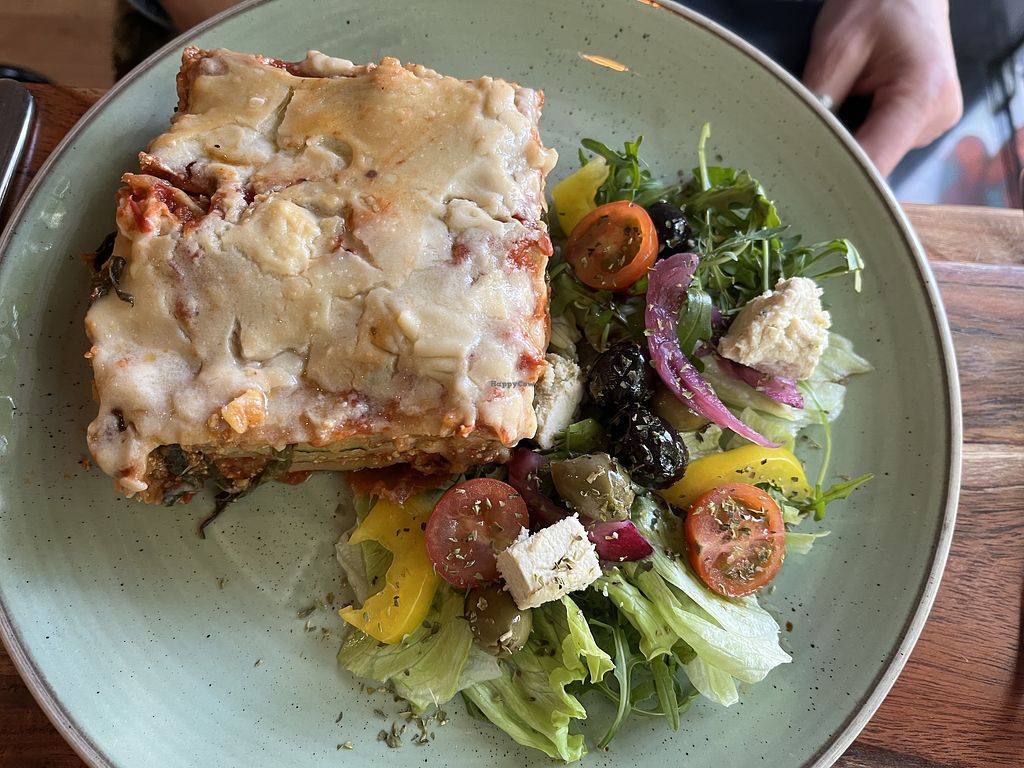 I went for lunch today and had the vegan lasagna and sweet potato fries. The food was delicious great portion sizes too. The best vegan lasagna I’ve ever tasted. I had a juice too which was tasty. The service was speedy, the staff were friendly the restaurant has a chilled vibe. I would definitely recommend.