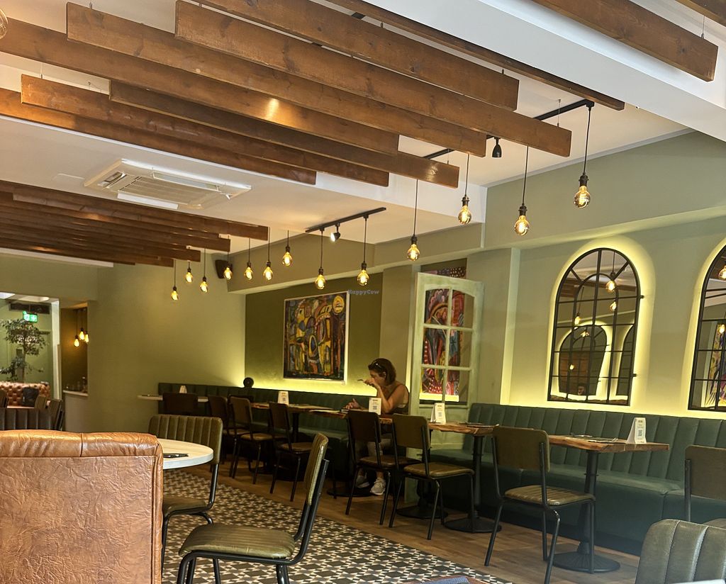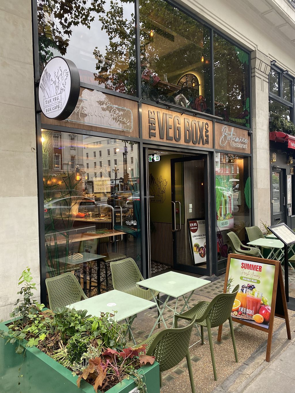 Great get together with one non vegan and one vegetarian friend at delicious lunch at THE VEG BOX CAFE! I'm vegan so All vegan menu perfect! 🌱🍲🥘🍛🍨🍫😋👌 Located very conveniently between Marylebone & Baker street Underground stations! Very welcoming staff & relaxing atmosphere with beautiful decor!🌻😍🖼 Great views of London life out of the upstairs windows too!🚌🌳🚕🌞 Very friendly Manager who also makes amazing cocktails and kombucha! We all had a lovely time and can highly recommend! 💚🤩🍸🍹☕️