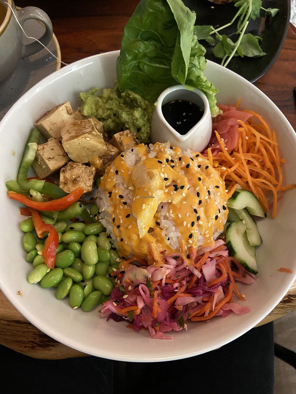 Food was fire, second floor seating for people watching was great, staff was hella nice, overall would recommend! I got the sushi salad bowl and my fiancé got the vegan carbonara. We split a bao, mint tea, and a tiramisu. Super tasty!