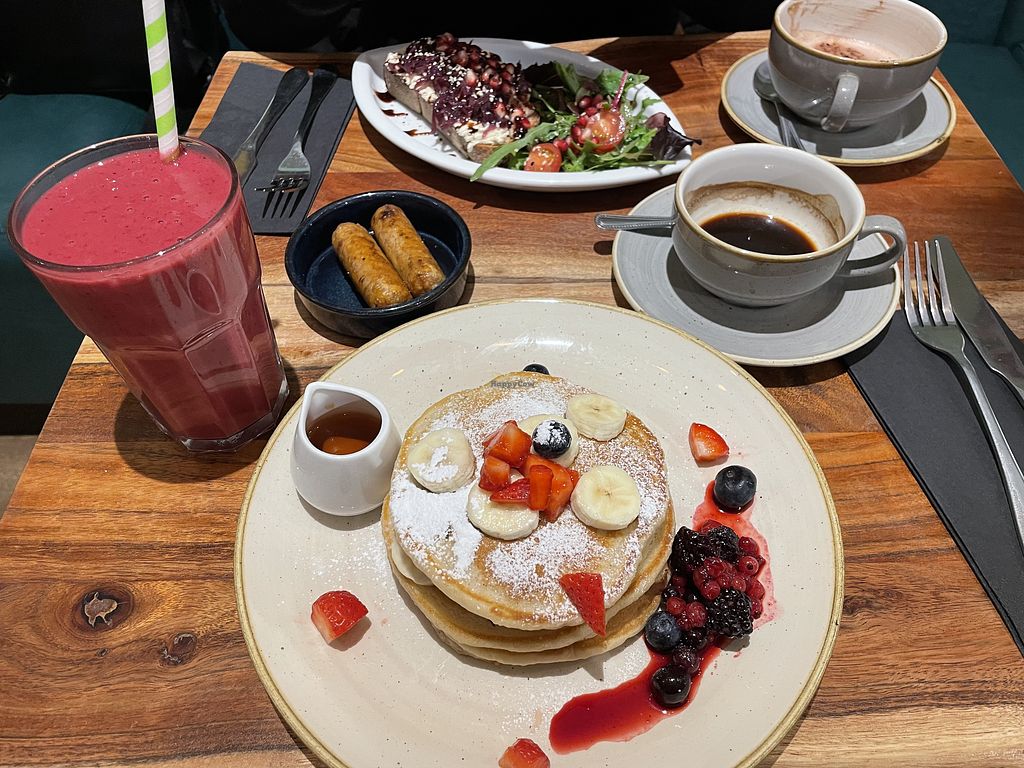 I kind of ended up here accidentally as another vegan restaurant was closed. My fear was that it was a ‘typical British’ experience (I got a bit tired of British food after travelling in the UK for long). It wasn’t at all. They serve English breakfast but they have so many other great options, we tried the croissant (one of the best I ever had!), the crostini with onion, and the pancakes. Everything was super delicious and staff was so so friendly it was such a nice experience to have lunch here. The only thing that was a bit off was that the music was a bit loud for my liking. But maybe I’m just getting old😄