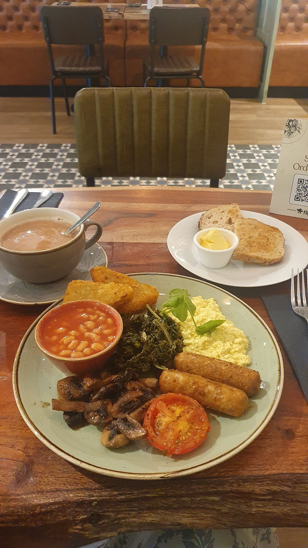 This is no drill — a full vegan English breakfast with super kind service! Everything was delicious and the atmosphere warm and welcoming. Definitely recommend!