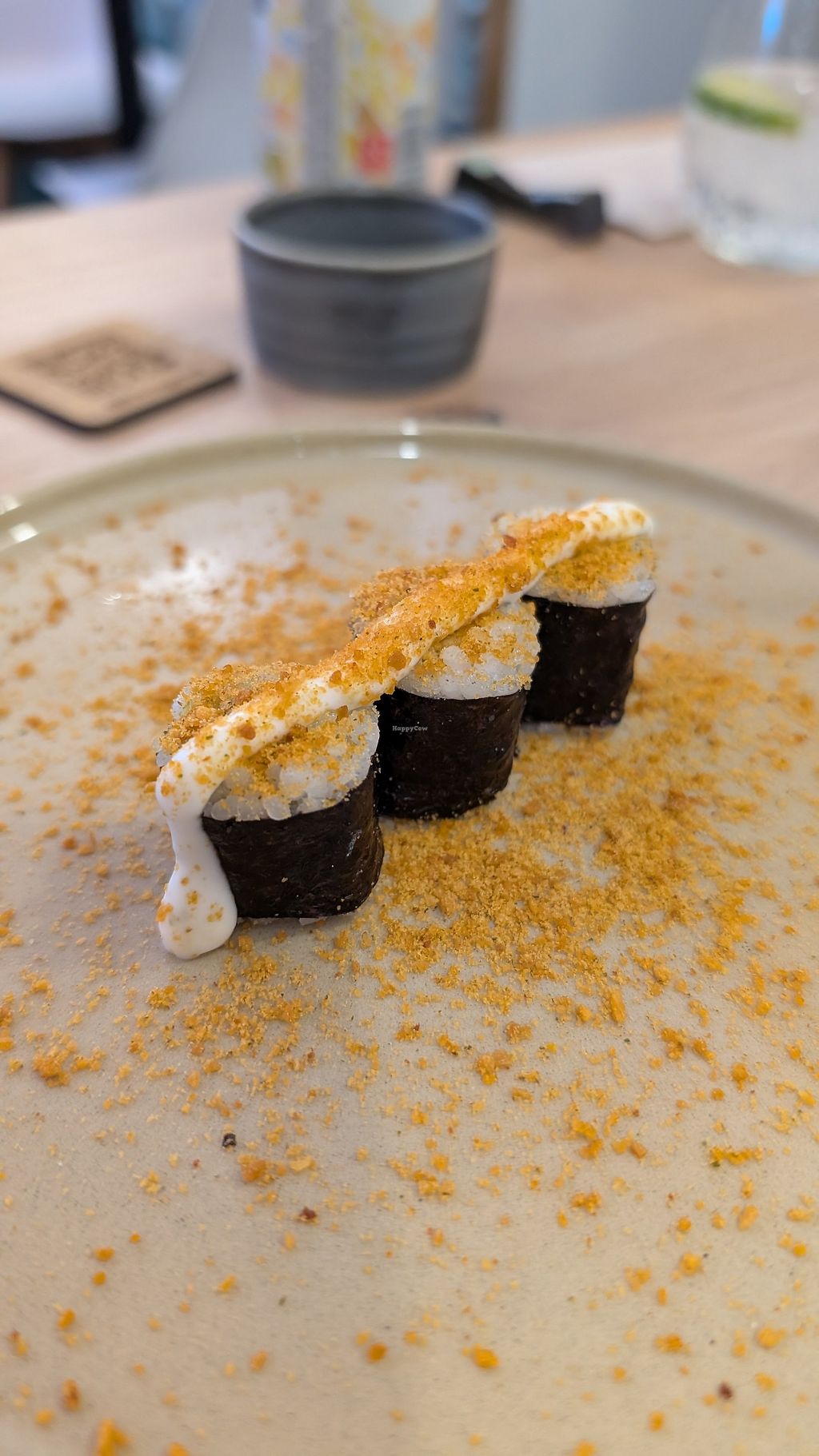 Went here yesterday and had the time of our lives. We tried 4 different sushi’s (California, tempure cheese, krunchy, no copy), salmon nigiri and the mushroom gyozas. Everything we had was spectacular however the krunchy was a little too spicy for our liking. The staff were amazing and uplifted the whole experience. 10/10
