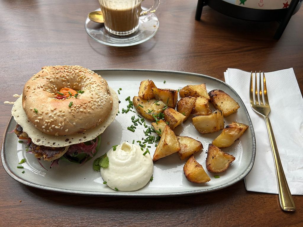 Super friendly staff and lovely home made food. Had a gf carrot “sal-mon” and not cream cheese bagel and a chai latte. Really freshly made and amazing flavours
