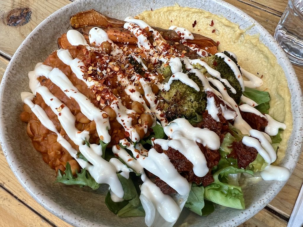 2022: Went here for lunch and got the Holiday hash stack, the earth bowl, hug in a mug (hot chocolate), tea and a chocolate salted caramel cake with ice cream. The food was all delicious and worth the wait. The service is was great too. I fantasise about that cake it was so good! Don’t skip it #Veganuary