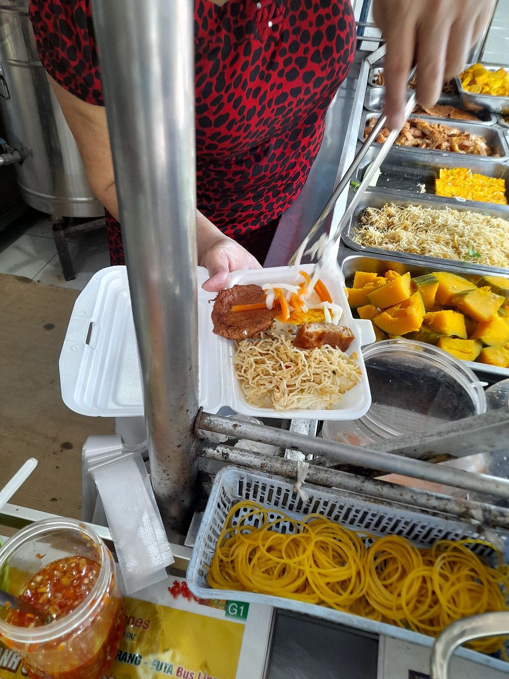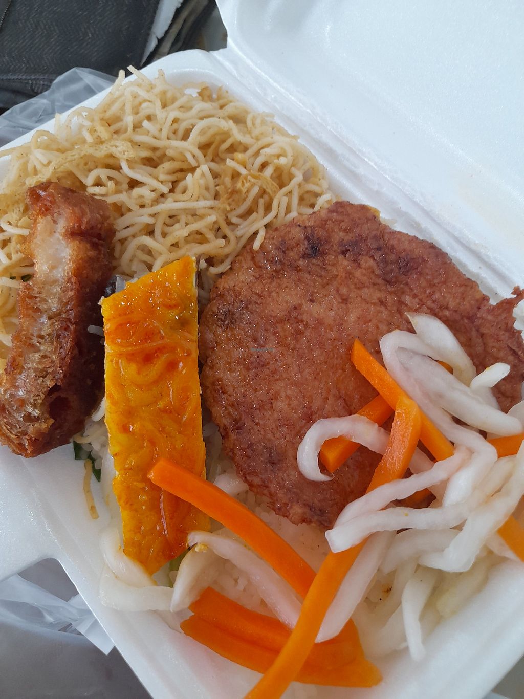 Great local vegetarian restaurant. All food is vegan. I spotted yogurts for sale. No English spoken and no menu in English. Run by friendly Vietnamese ladies. They have a stall inside with a com chay selection. I opted for a vegan com tam. It cost me 35,000 Dong. Very nice indeed. Plenty of seating inside. Parking outside. Payment by cash or bank transfer.