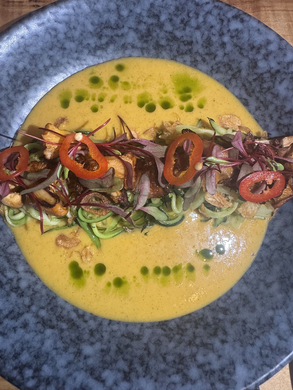 All dishes are intended to be shared, plenty of GF options (all but 3 items on the menu could have been made GF as of March ‘25), and everything really made of mushrooms. From noodle-like texture to creamy and flavorful sauces and dessert with candied mushrooms, very enjoyable. Fresh coconut water straight from the coconut was a wonderful compliment.