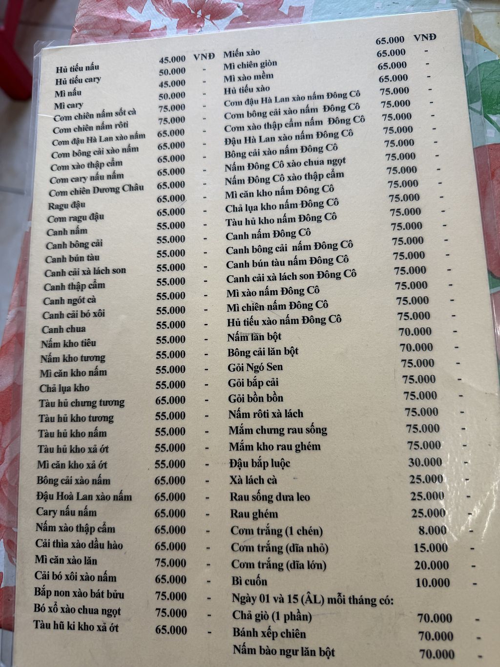 think we came here at a bad time (a few minutes before closing) because the food was weird, not sure why so many people rave about it. although having eaten at many small vege places in vietnam this was the same as most of them - a bit bland and most of the food was cold. maybe we should have come at lunch. good location and right cheap though.