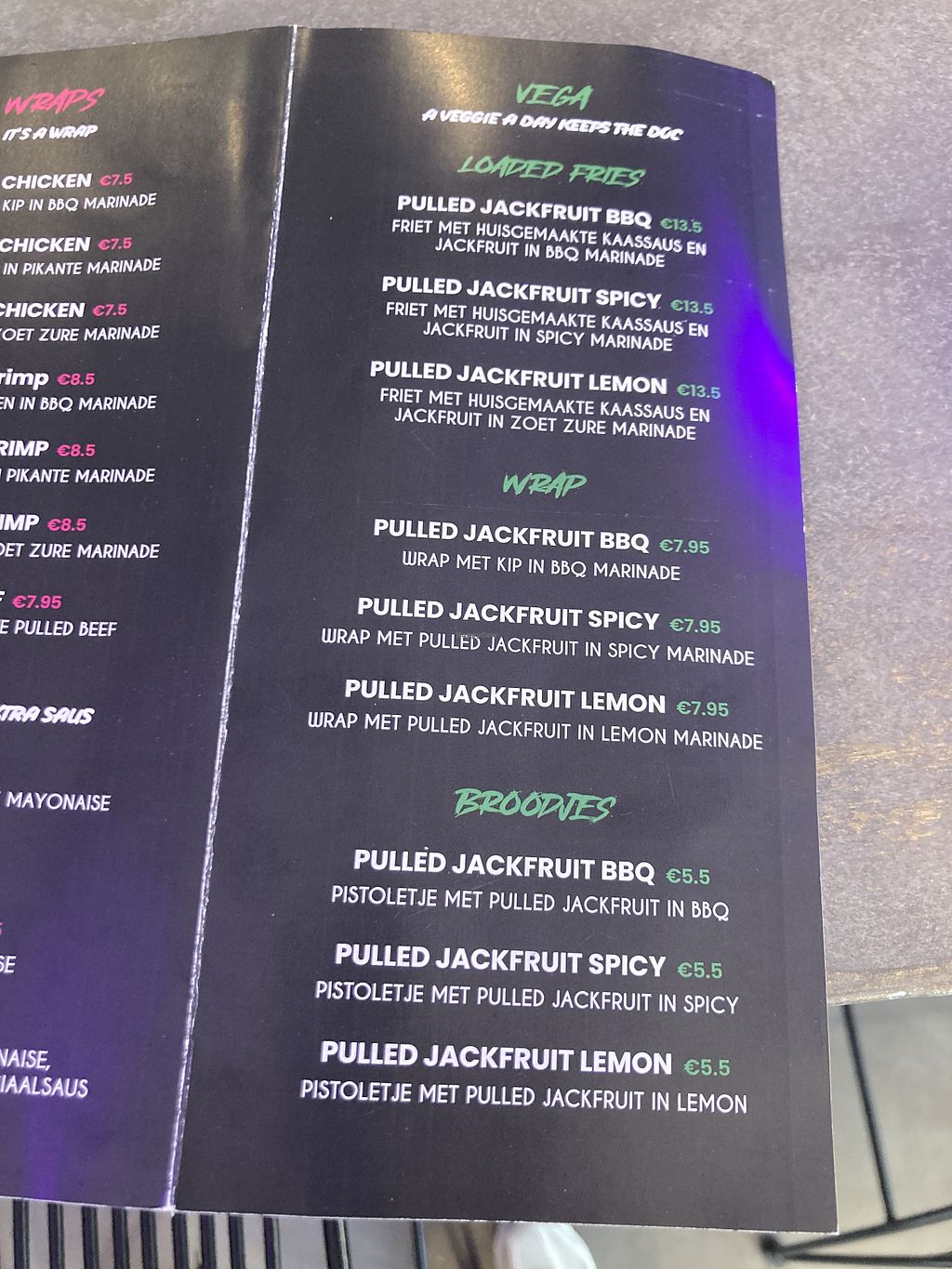 Tito Alkmaar has six delicious vegan options! I tried the loaded fries bbq jackfruit and it was really nice. I do think it’s a bit expensive. You’ll pay €13,75 for the loaded fries, but it’s cheaper than the meat so that’s good.😄