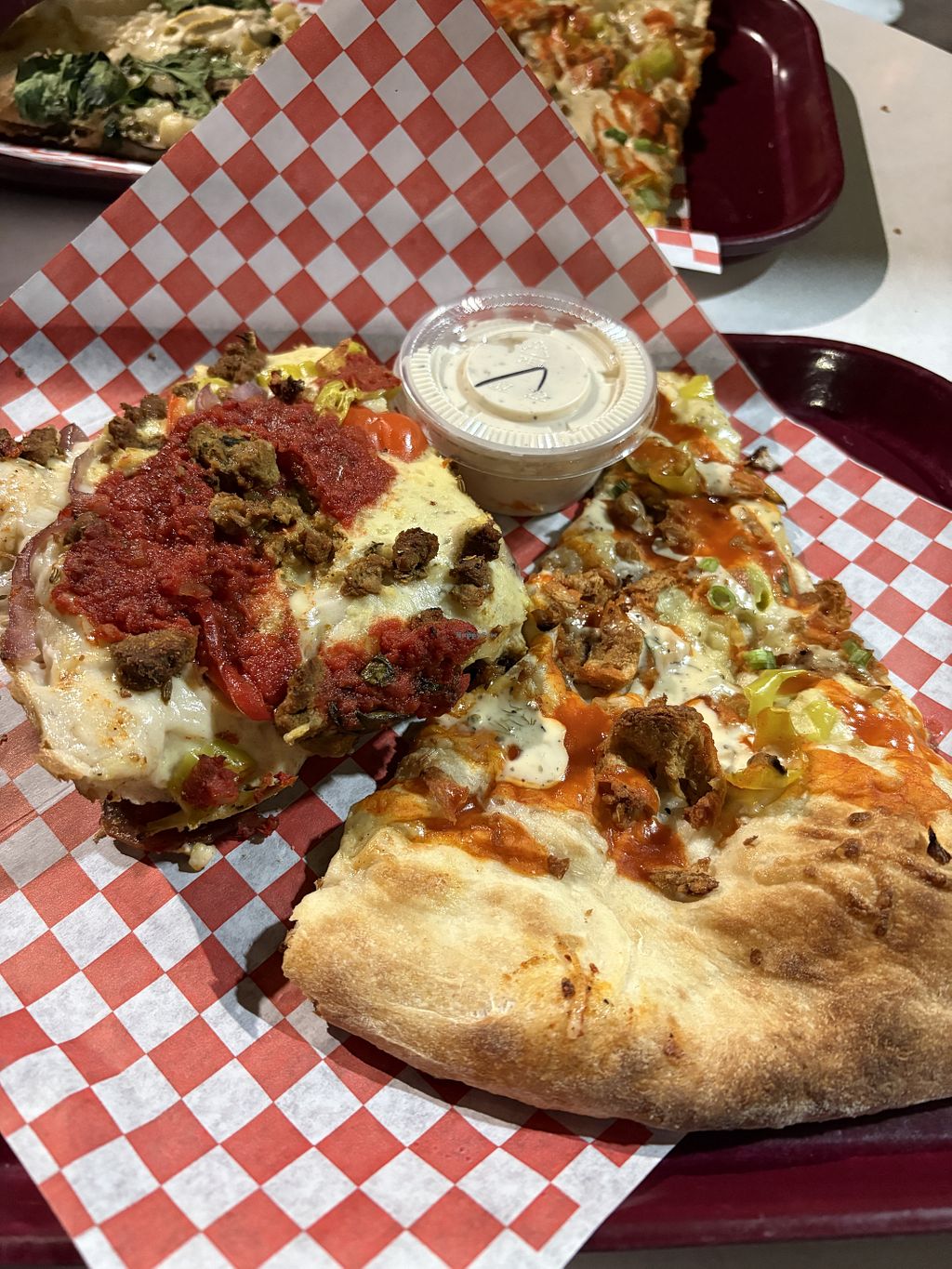 Read morei love that they have variety of vegan options not just a boring veggie pizza and that’s it. We always go for a slice before shows or games downtown. It’s great they have vegan slices readily available and you don’t have to order a whole pie and wait. Their ranch is also TOP notch.