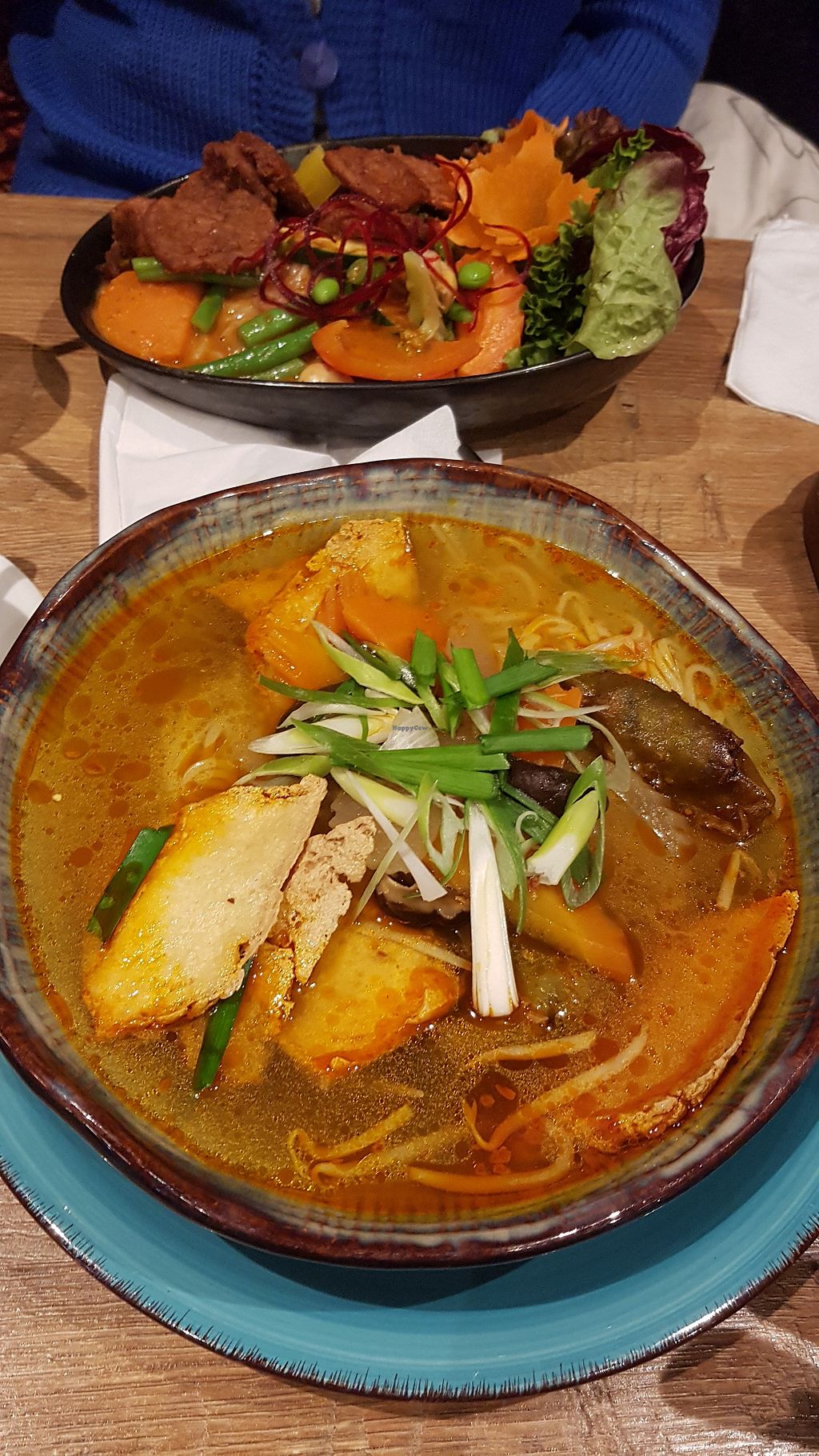Extremely good food, very flavourful, quite authentic as well, huge variety of Asian foods, I also love the starters that give you the change to try out even more. The "chicken wings" were super nice, the tofu in green rice was a bit bland tho. Had the hu tieu chay as well, the broth was phenomenal, and I loved the chewyness of the rice noodles a lot. Unfortunately they threw the deep-fried gyoza into the soup, which made them soaked and dissolving. My friend's xa xiu "meat" was also a bit tough to chew, but otherwise it was an amazing experience.
