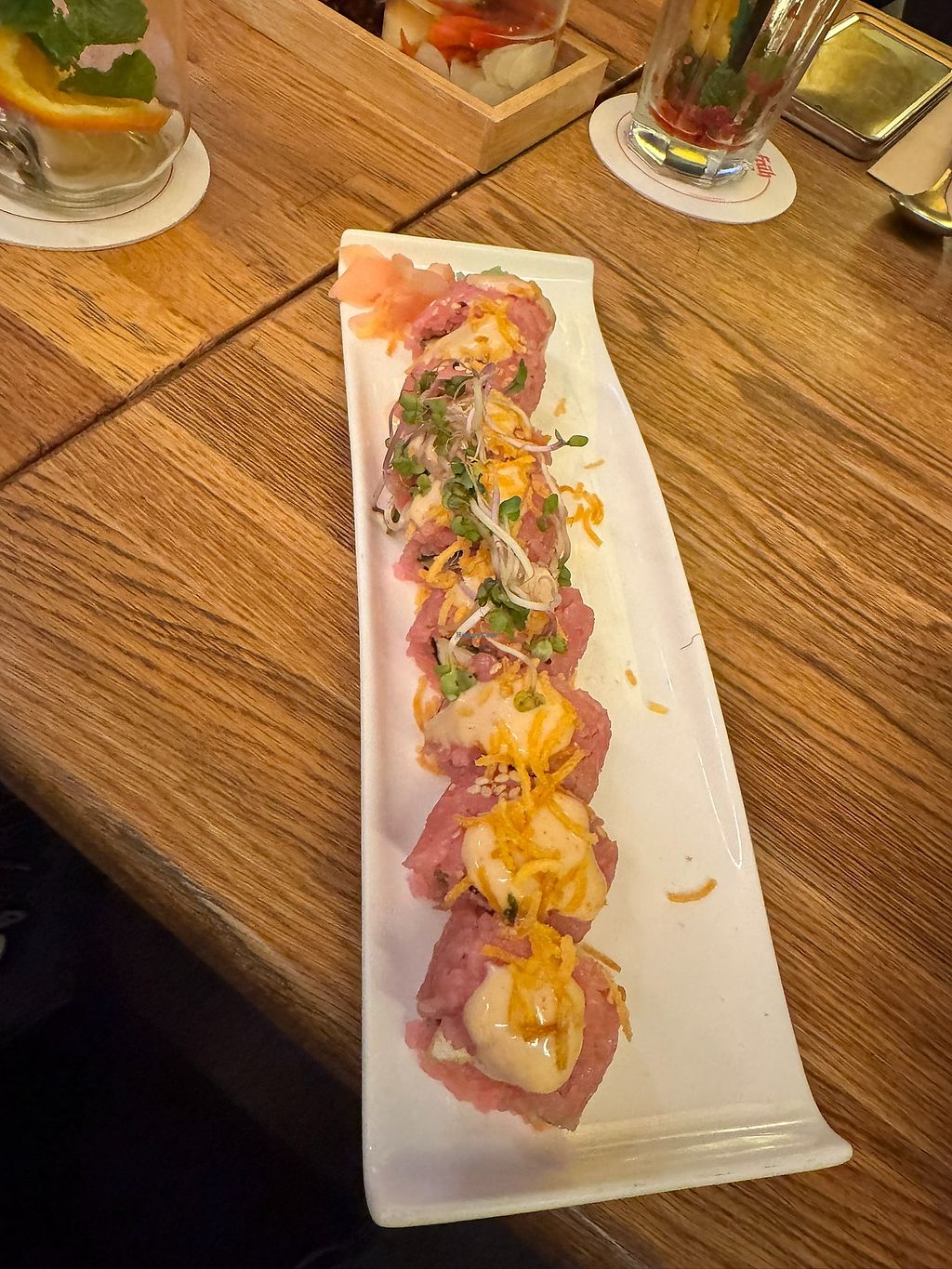 Had a shared mixed vegan plate (everything was sooo good!) and „special“ sushi, which where also super tasty.