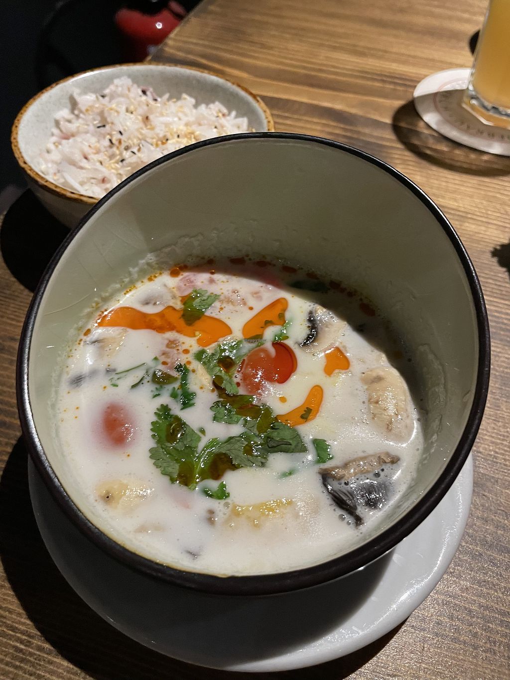Idk if there's some confusion about this but this place isn't fully vegan. I checked the allergens and ordered the coconut soup and dumplings (4 and 17 on the menu). It tasted amazing and I'd definitely go back here to try more dishes!