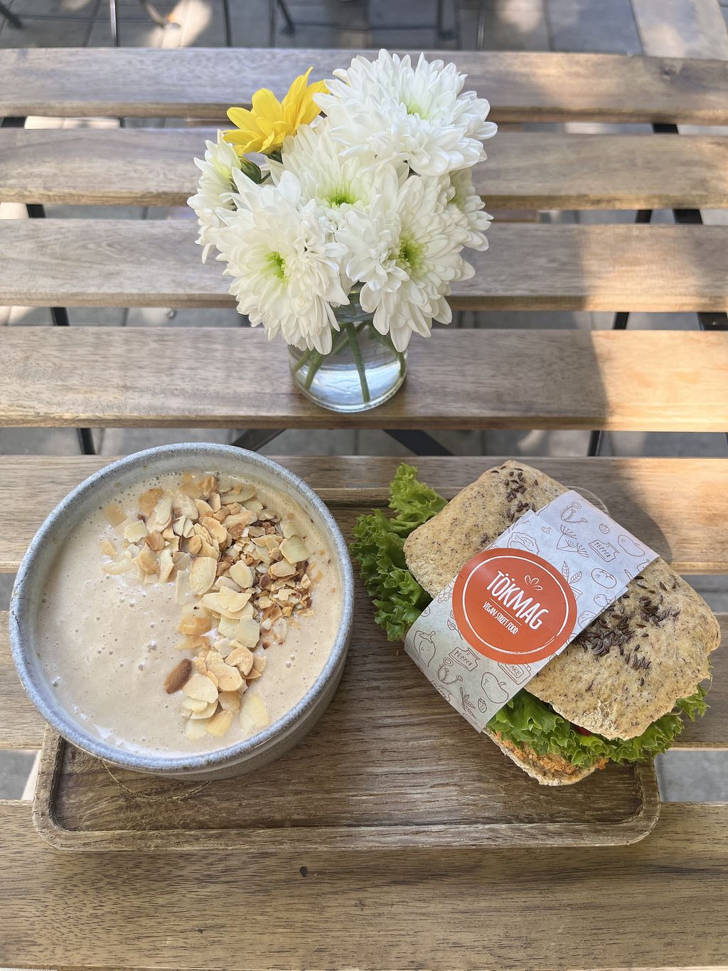 In een rustig zijstraatje van de drukke hoofdweg zit dit vegan pareltje. De satéburger was heerlijk. Een fris sapje erbij. Je kunt er ook andere verse broodjes krijgen. Die proberen we een andere keer. Je bestelt het eten aan de balie en haalt het op als het klaar is.