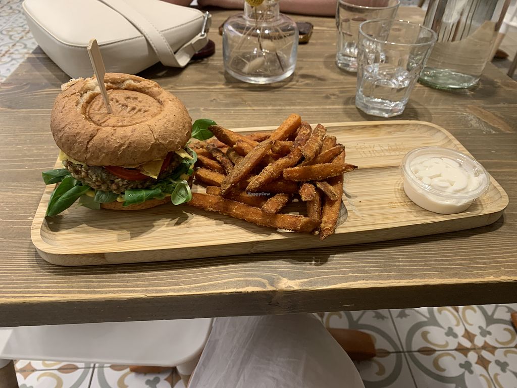 Apple cinnamon soup and vegan seasoned cottage cheese sandwich