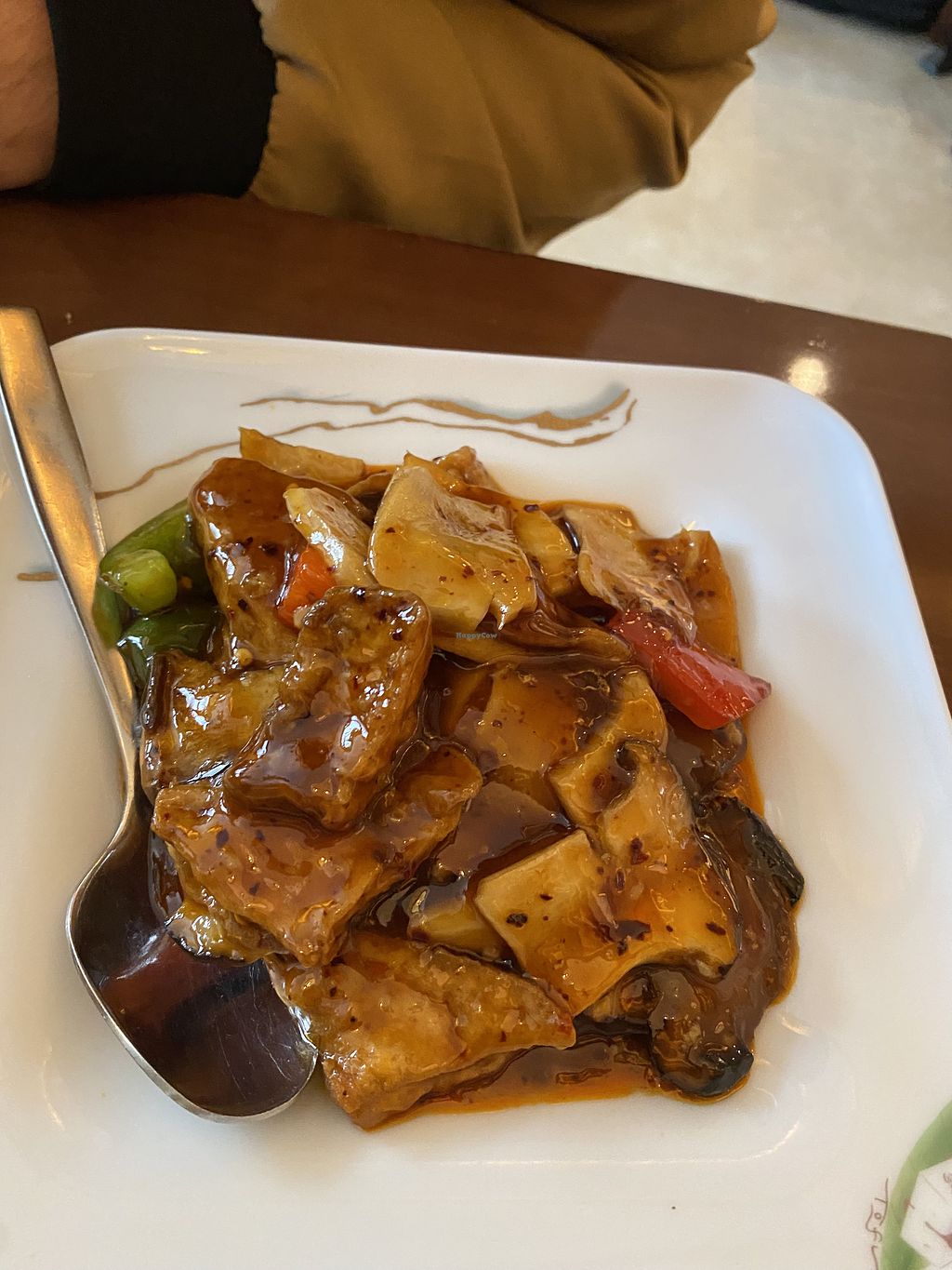Was excited to try an all vegan Chinese place. The fried rice was very very good but dry so the black bean sauce from the tofu helped. The server was so helpful and nice. He gave me both the black bean sauce and the special house sauce to try. I’m so glad he did because the house sauce was so spicy it made me cough and my eyes water!! I got tofu with black bean sauce and it was okay. I wish it was a different texture on the outside it was too soft.