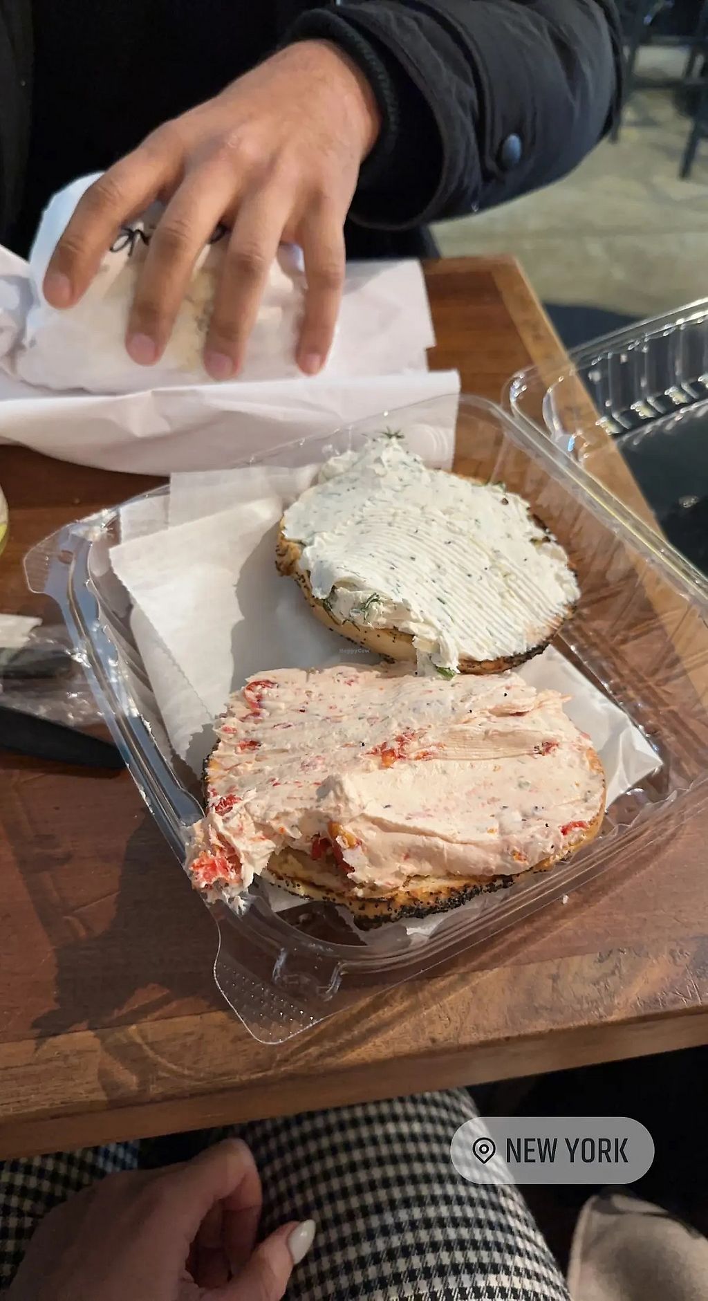We're super happy to try some NYC bagels with vegan cream cheese. It's really good and totally worth it!