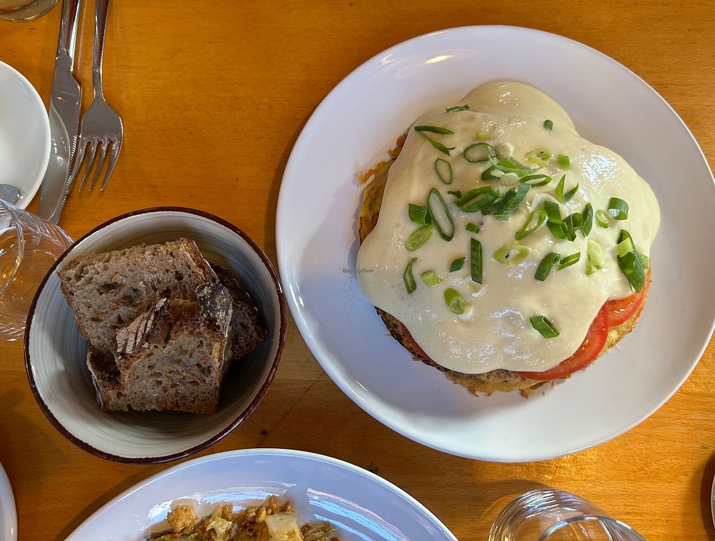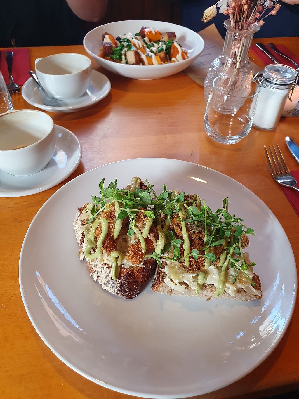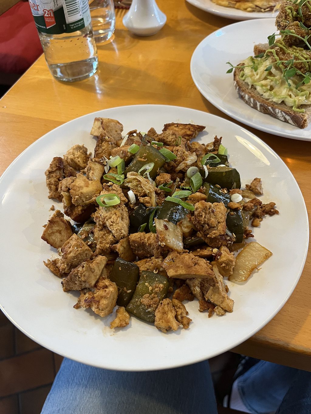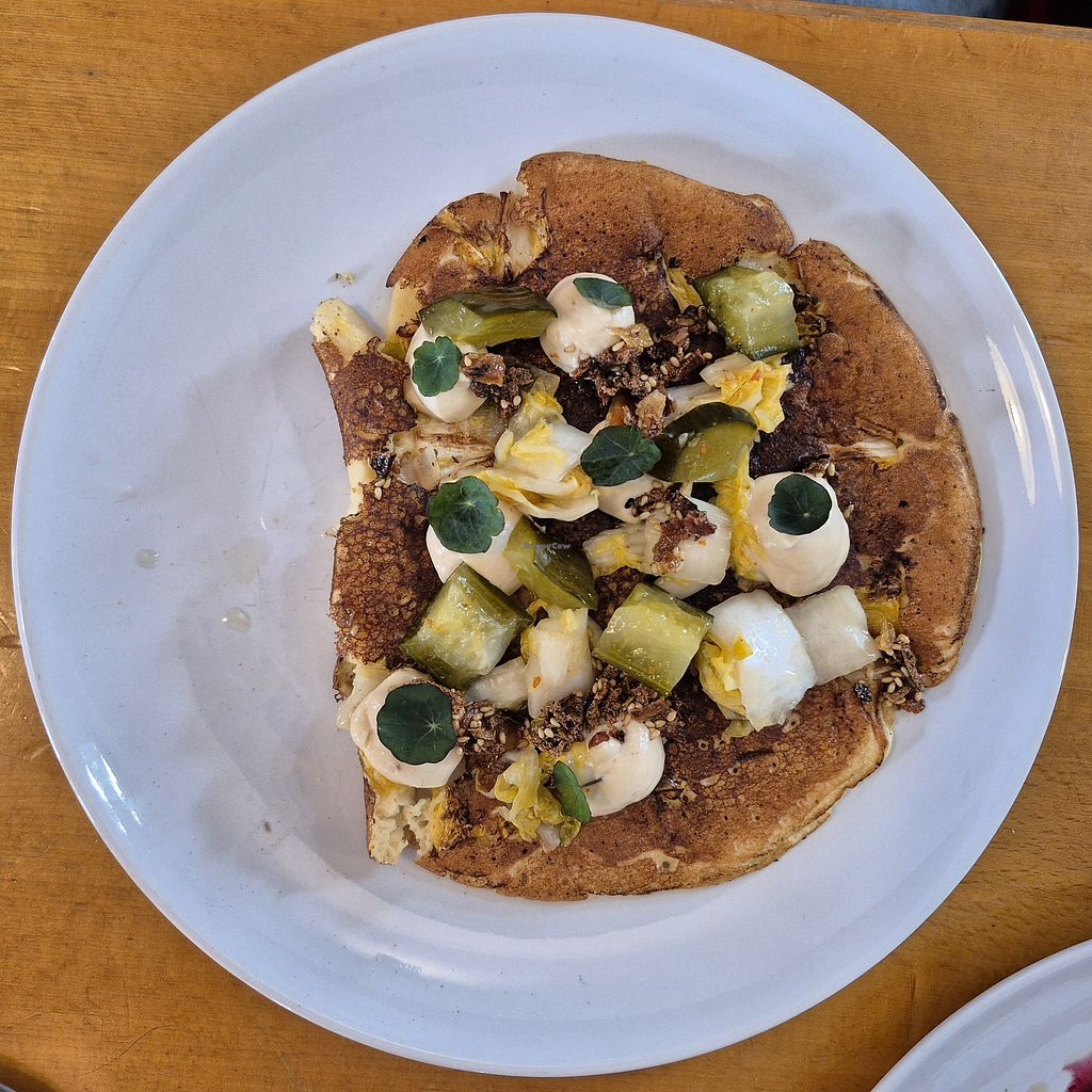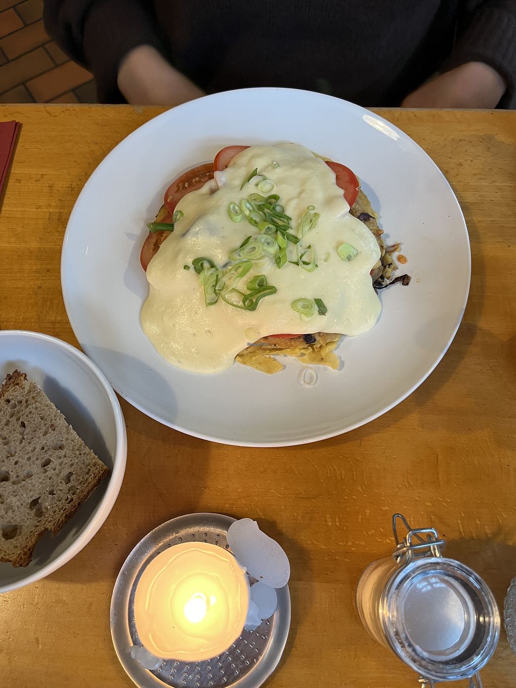 Leckeres Brunch. Wir hatten Kichererbsenomelette, scrambled Tofu, Hafermilchreis. Alles sehr delikat, gute Portionsgrössse, gemütliche Atmosphäre, freundliche Bedienung!