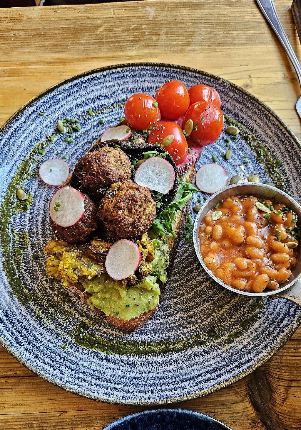 Nice atmosphere, fantastic range of coffees, good for non vegans and a great vegan selection. I didn’t have the pb breakfast as it looked too big for me so chose sides, smashed avocado, beans tomatoes and sourdough, still a lot of good but delicious!