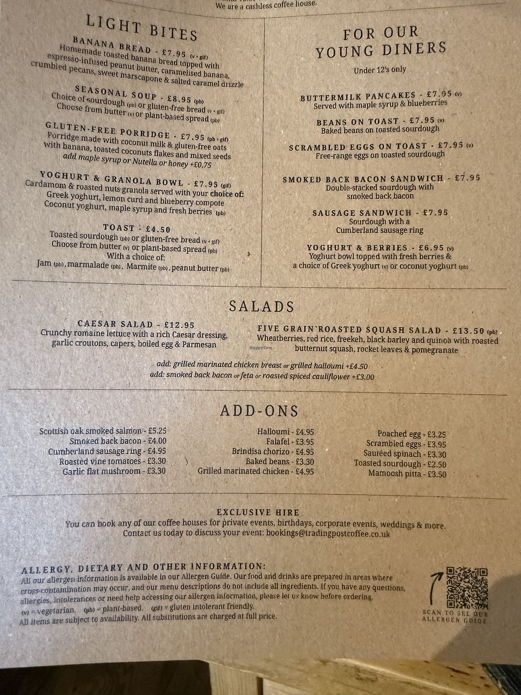 Read moreSo, thanks to Happy Cow, I found the Trading Post. The coffee was outstanding! The food was great too. Over 3 mornings I tried the vegan rarebit, the granola bowl and the full English (minus the falafels & houmous as I didn't fancy that for breakfast). I also got a sandwich to take away - Korean BBQ mushrooms on foccacia. Everything was freshly made, beautifully presented and absolutely delicious.
