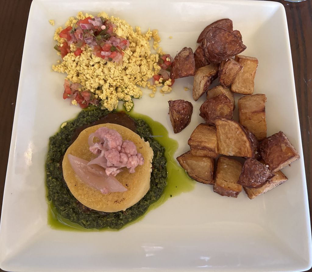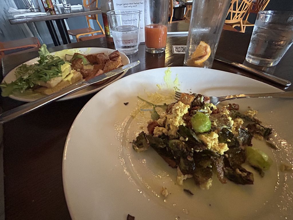 What a fun brunch! They have cool drinks and yummy interesting brunch options both vegan and vegetarian so great if your whole party isn’t vegan. We got the big tree house breakfast and the chorizo tofu scramble. We got both with tofu and vegan cheddar. Both were delicious! Portions were kind of small but we did feel full after so can’t complain much. We also got a the dirty chai which had rum in it and was very interesting. They also have mimosas and unlimited drip coffee!