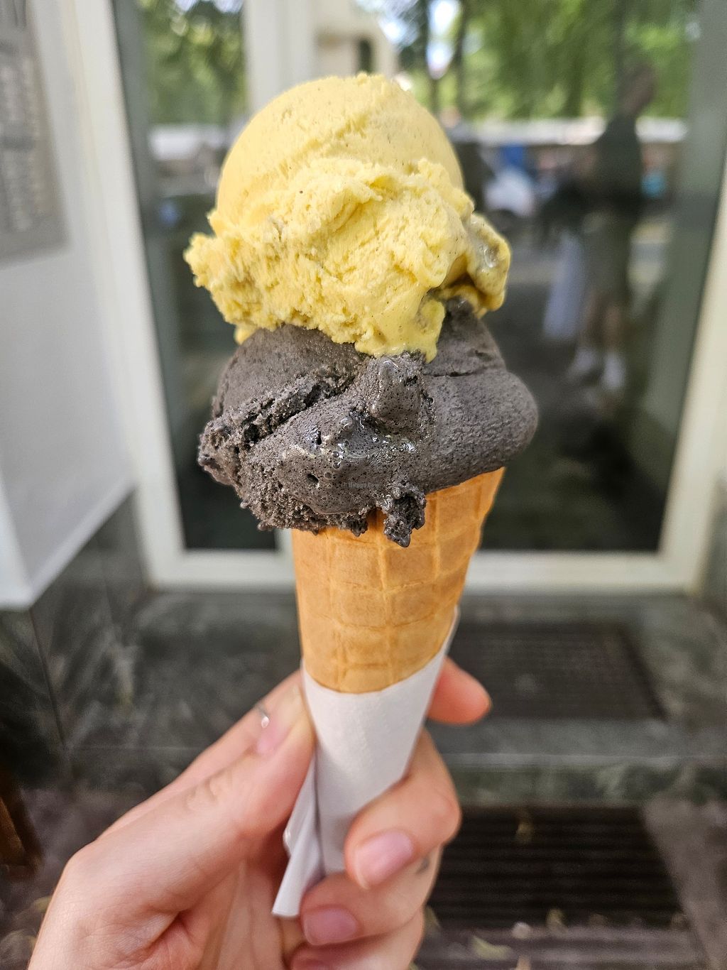 Das Eis war gut und die Auswahl ebenso. Alles vegan. Hatte Banane und Bienenstich, wobei ich hauptsächlich das Bananeneis geschmeckt habe